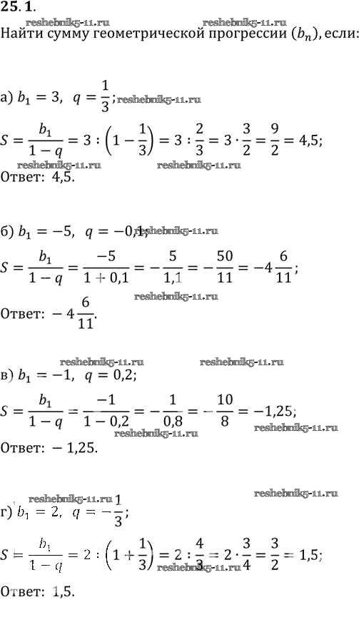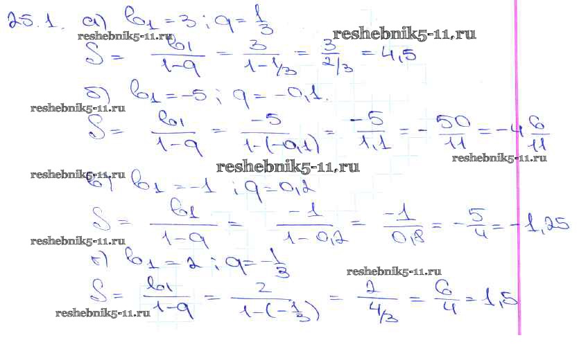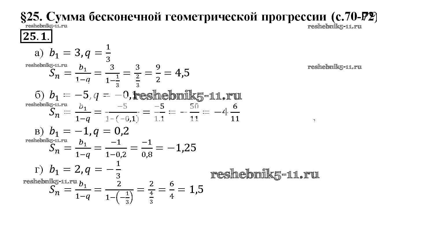 Готовая домашняя работа с ответами по Алгебре за 10, 11 класс Мордкович, Денищева, Корешкова, Мишустина, Семёнов, Тульчинская Задачник Базовый уровень Часть 2 Мнемозина 2015 ФГОС - §25. Сумма бесконечной геометрической прогрессии 25. 1
