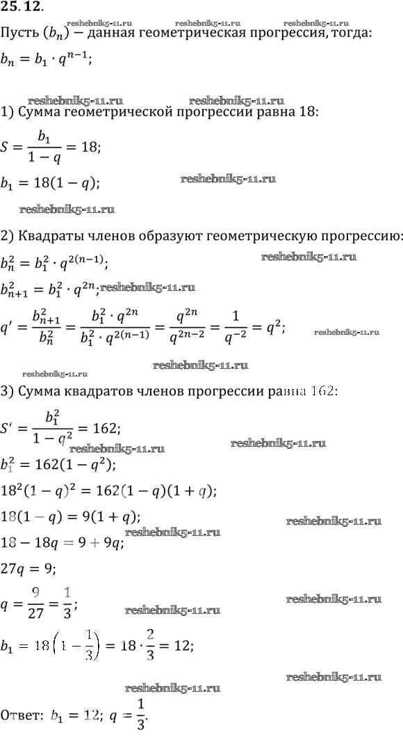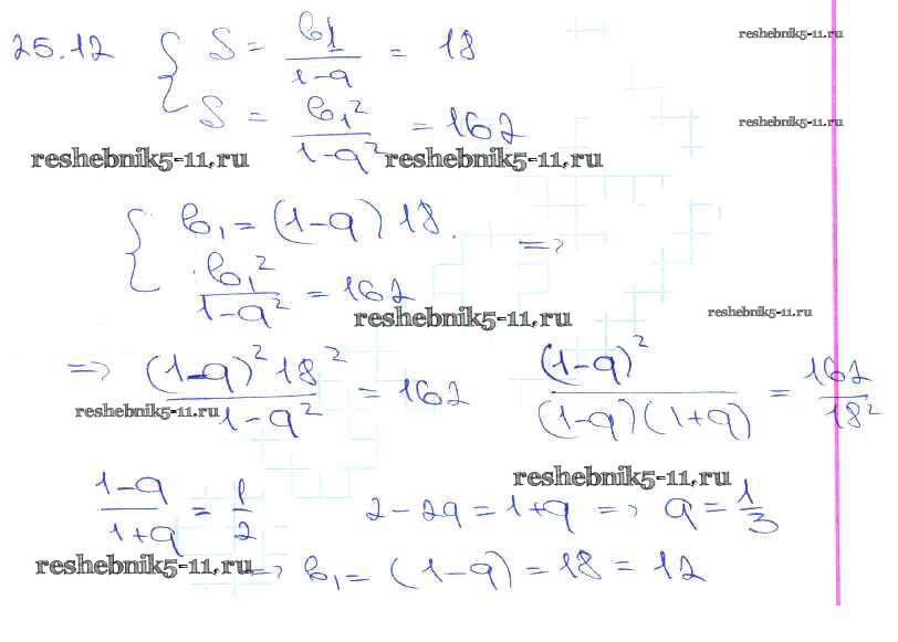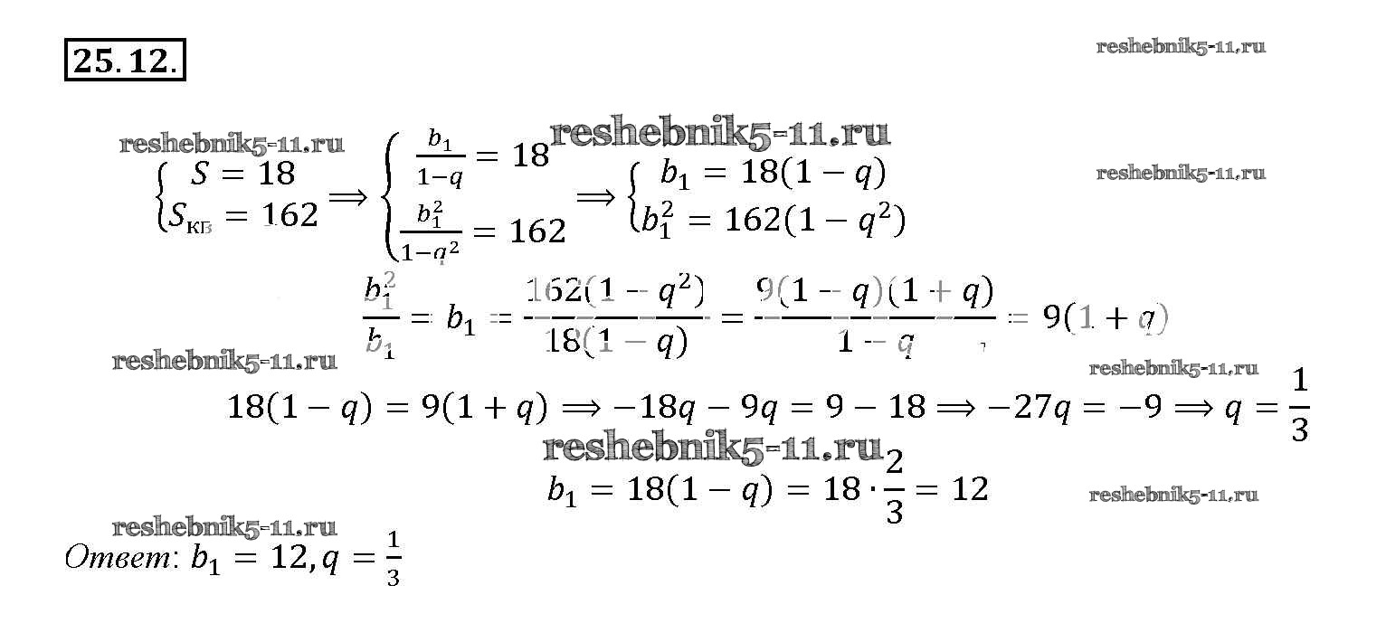 Готовая домашняя работа с ответами по Алгебре за 10, 11 класс Мордкович, Денищева, Корешкова, Мишустина, Семёнов, Тульчинская Задачник Базовый уровень Часть 2 Мнемозина 2015 ФГОС - §25. Сумма бесконечной геометрической прогрессии 25. 12