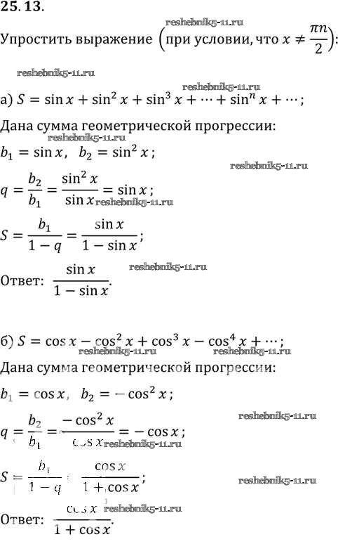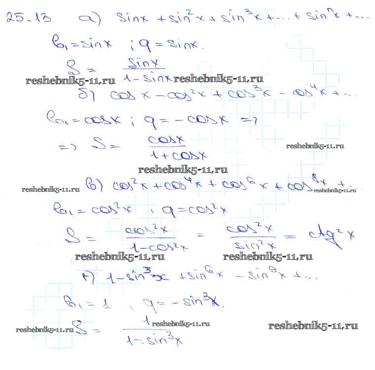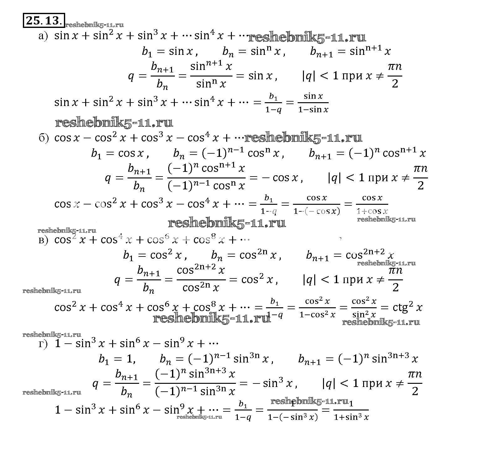 Готовая домашняя работа с ответами по Алгебре за 10, 11 класс Мордкович, Денищева, Корешкова, Мишустина, Семёнов, Тульчинская Задачник Базовый уровень Часть 2 Мнемозина 2015 ФГОС - §25. Сумма бесконечной геометрической прогрессии 25. 13