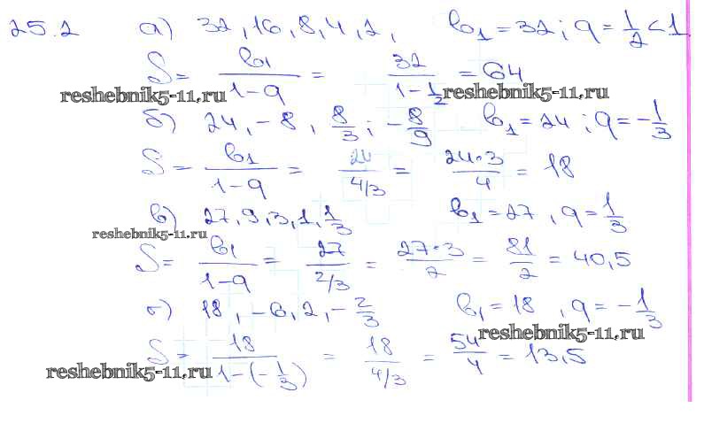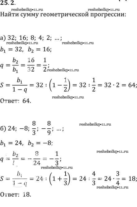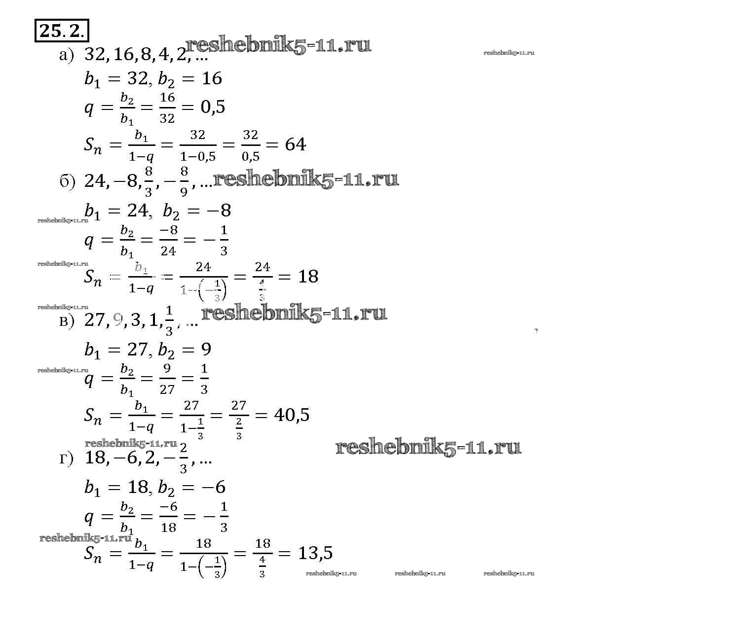 Готовая домашняя работа с ответами по Алгебре за 10, 11 класс Мордкович, Денищева, Корешкова, Мишустина, Семёнов, Тульчинская Задачник Базовый уровень Часть 2 Мнемозина 2015 ФГОС - §25. Сумма бесконечной геометрической прогрессии 25. 2
