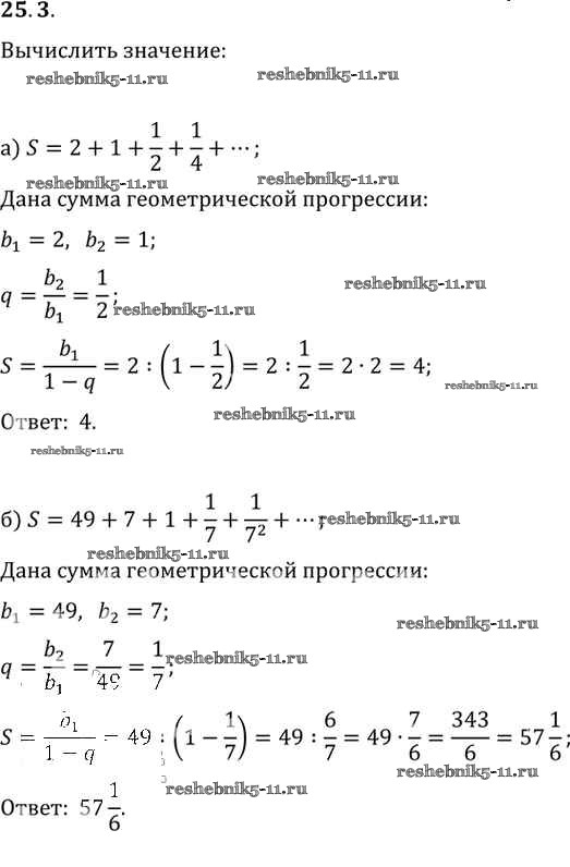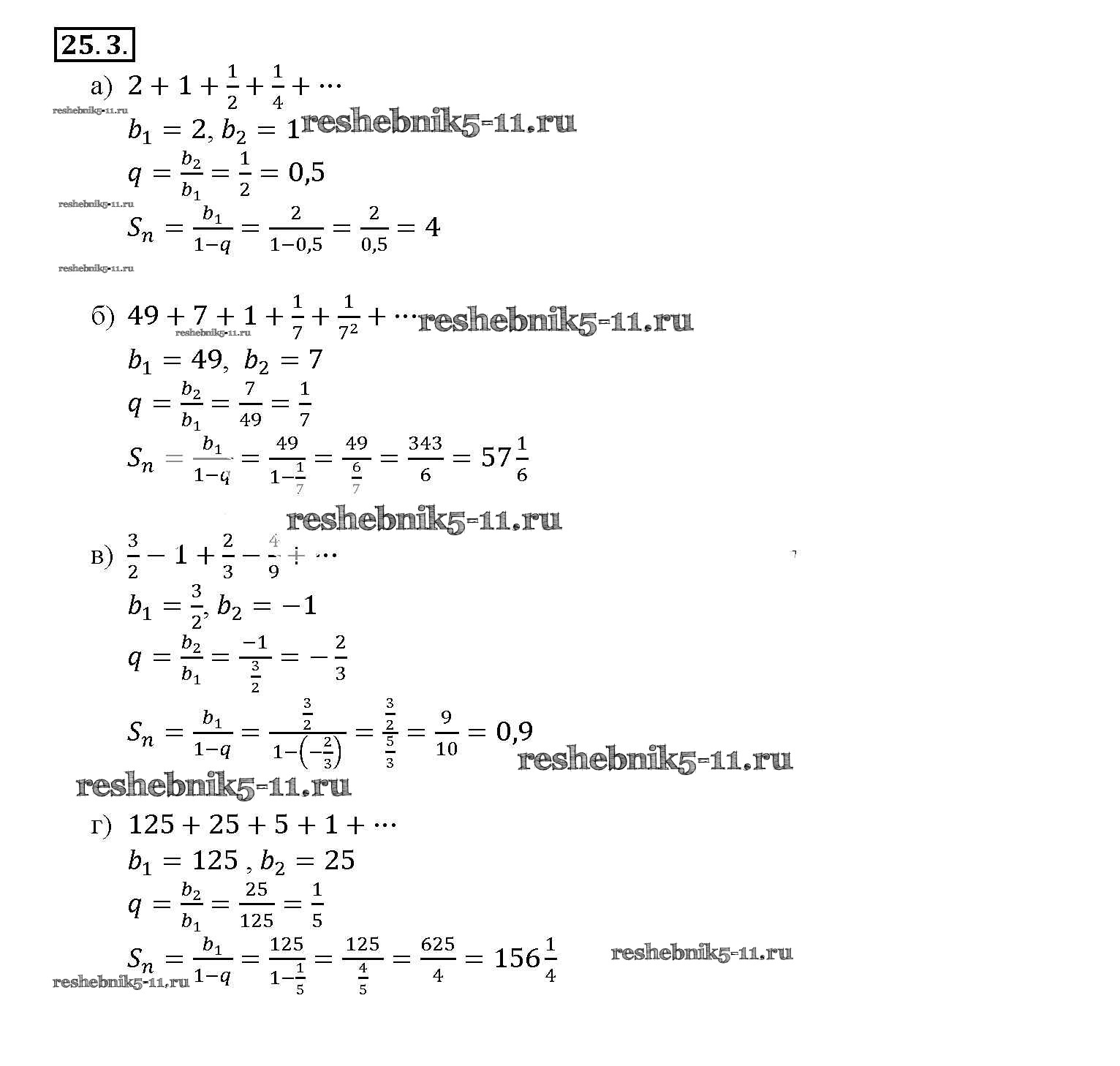 Готовая домашняя работа с ответами по Алгебре за 10, 11 класс Мордкович, Денищева, Корешкова, Мишустина, Семёнов, Тульчинская Задачник Базовый уровень Часть 2 Мнемозина 2015 ФГОС - §25. Сумма бесконечной геометрической прогрессии 25. 3