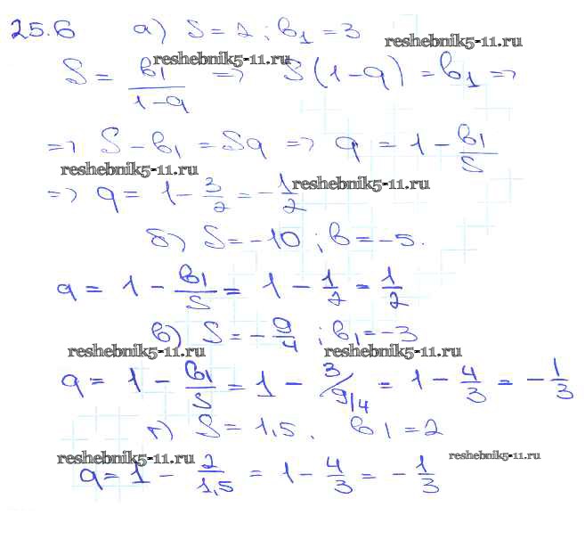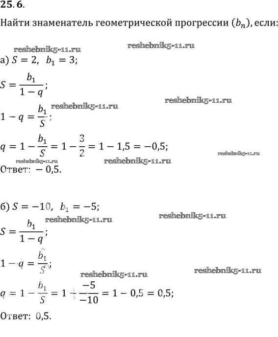 Готовая домашняя работа с ответами по Алгебре за 10, 11 класс Мордкович, Денищева, Корешкова, Мишустина, Семёнов, Тульчинская Задачник Базовый уровень Часть 2 Мнемозина 2015 ФГОС - §25. Сумма бесконечной геометрической прогрессии 25. 6
