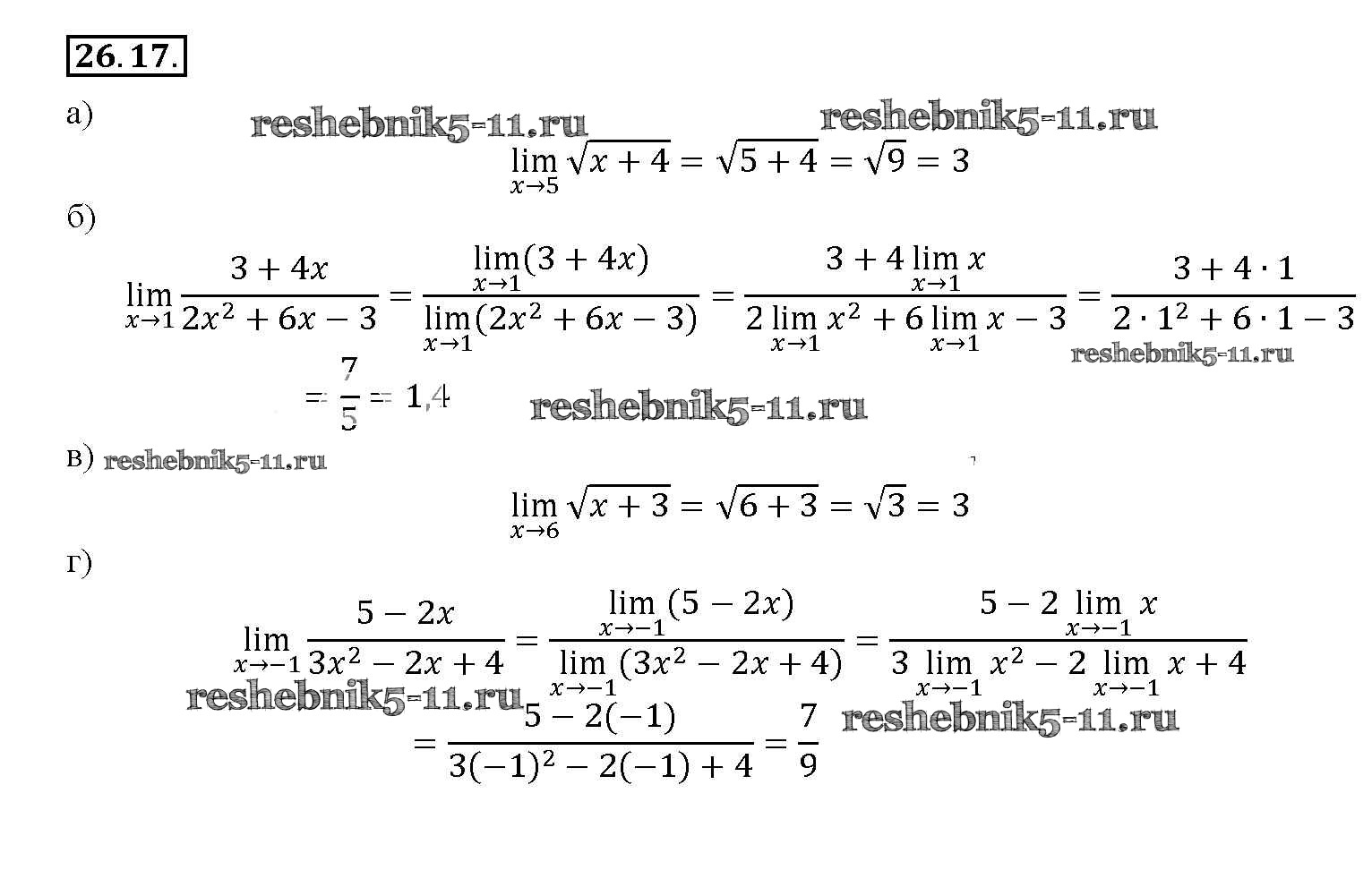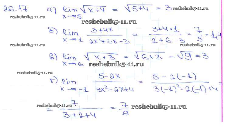 Готовая домашняя работа с ответами по Алгебре за 10, 11 класс Мордкович, Денищева, Корешкова, Мишустина, Семёнов, Тульчинская Задачник Базовый уровень Часть 2 Мнемозина 2015 ФГОС - §26. Предел функции 26. 17