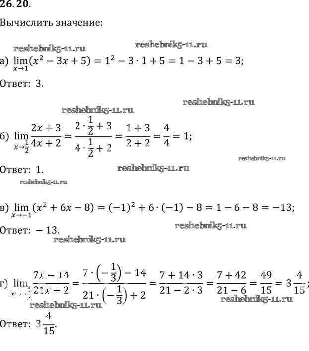 Готовая домашняя работа с ответами по Алгебре за 10, 11 класс Мордкович, Денищева, Корешкова, Мишустина, Семёнов, Тульчинская Задачник Базовый уровень Часть 2 Мнемозина 2015 ФГОС - §26. Предел функции 26. 20