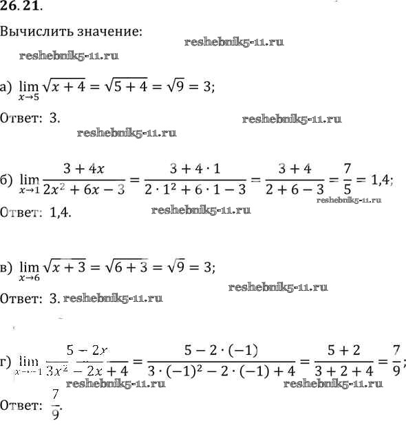 Готовая домашняя работа с ответами по Алгебре за 10, 11 класс Мордкович, Денищева, Корешкова, Мишустина, Семёнов, Тульчинская Задачник Базовый уровень Часть 2 Мнемозина 2015 ФГОС - §26. Предел функции 26. 21