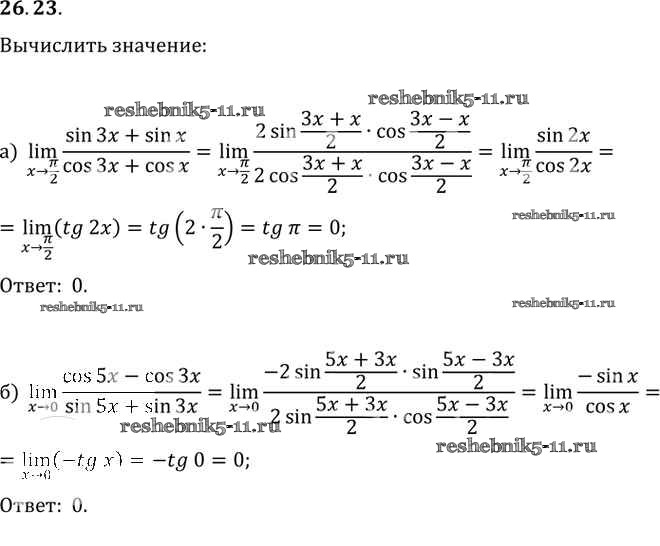 Готовая домашняя работа с ответами по Алгебре за 10, 11 класс Мордкович, Денищева, Корешкова, Мишустина, Семёнов, Тульчинская Задачник Базовый уровень Часть 2 Мнемозина 2015 ФГОС - §26. Предел функции 26. 23