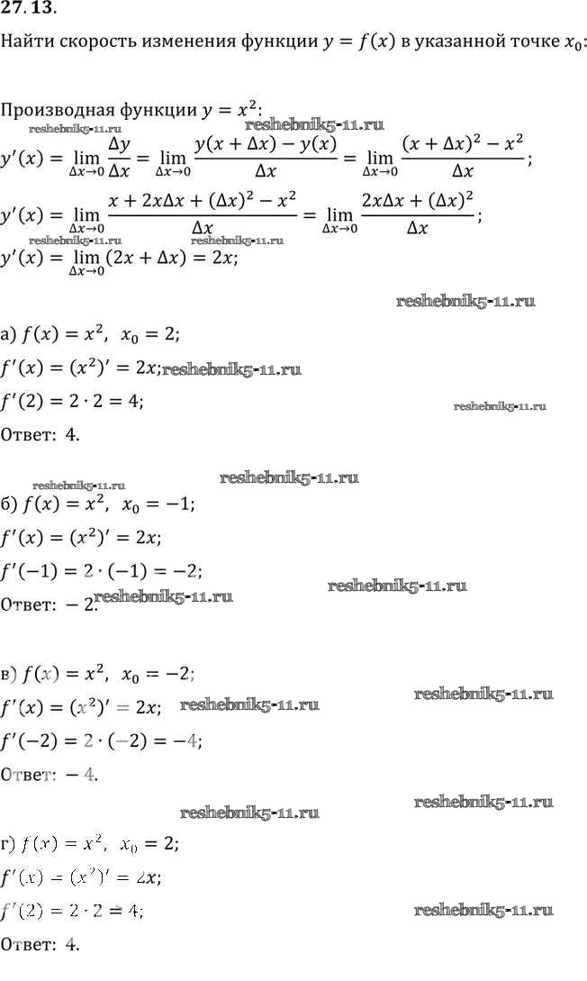 Готовая домашняя работа с ответами по Алгебре за 10, 11 класс Мордкович, Денищева, Корешкова, Мишустина, Семёнов, Тульчинская Задачник Базовый уровень Часть 2 Мнемозина 2015 ФГОС - §27. Определение производной 27. 13