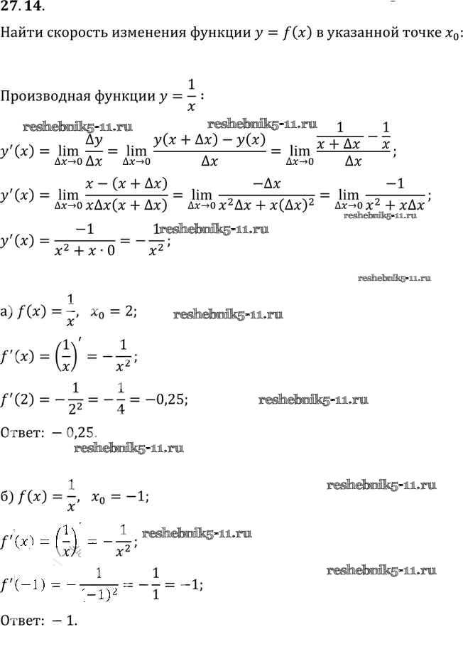Готовая домашняя работа с ответами по Алгебре за 10, 11 класс Мордкович, Денищева, Корешкова, Мишустина, Семёнов, Тульчинская Задачник Базовый уровень Часть 2 Мнемозина 2015 ФГОС - §27. Определение производной 27. 14