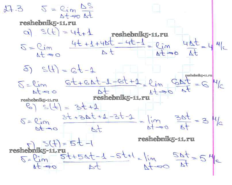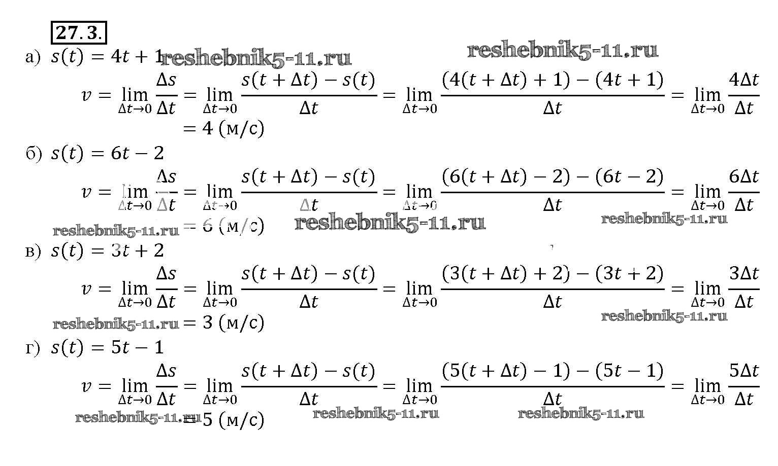 Готовая домашняя работа с ответами по Алгебре за 10, 11 класс Мордкович, Денищева, Корешкова, Мишустина, Семёнов, Тульчинская Задачник Базовый уровень Часть 2 Мнемозина 2015 ФГОС - §27. Определение производной 27. 3
