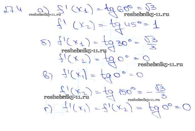 Готовая домашняя работа с ответами по Алгебре за 10, 11 класс Мордкович, Денищева, Корешкова, Мишустина, Семёнов, Тульчинская Задачник Базовый уровень Часть 2 Мнемозина 2015 ФГОС - §27. Определение производной 27. 4