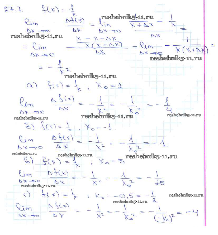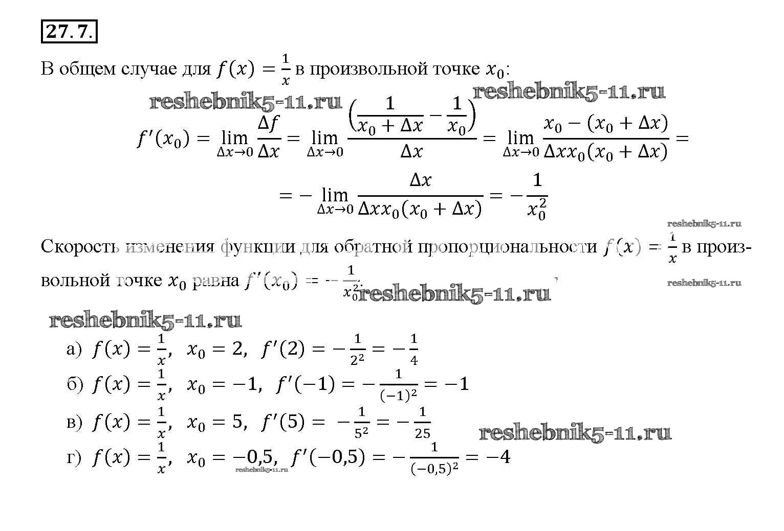 Готовая домашняя работа с ответами по Алгебре за 10, 11 класс Мордкович, Денищева, Корешкова, Мишустина, Семёнов, Тульчинская Задачник Базовый уровень Часть 2 Мнемозина 2015 ФГОС - §27. Определение производной 27. 7
