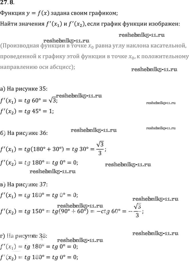 Готовая домашняя работа с ответами по Алгебре за 10, 11 класс Мордкович, Денищева, Корешкова, Мишустина, Семёнов, Тульчинская Задачник Базовый уровень Часть 2 Мнемозина 2015 ФГОС - §27. Определение производной 27. 8