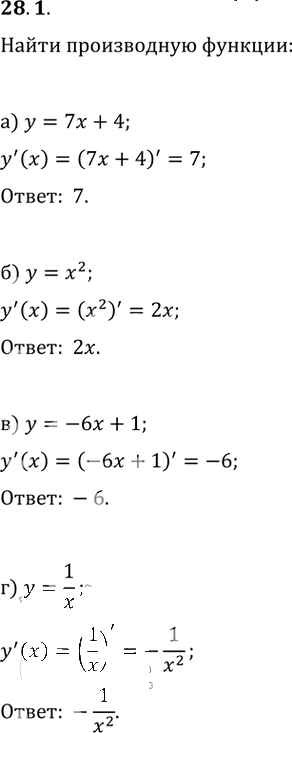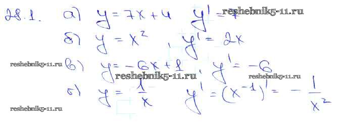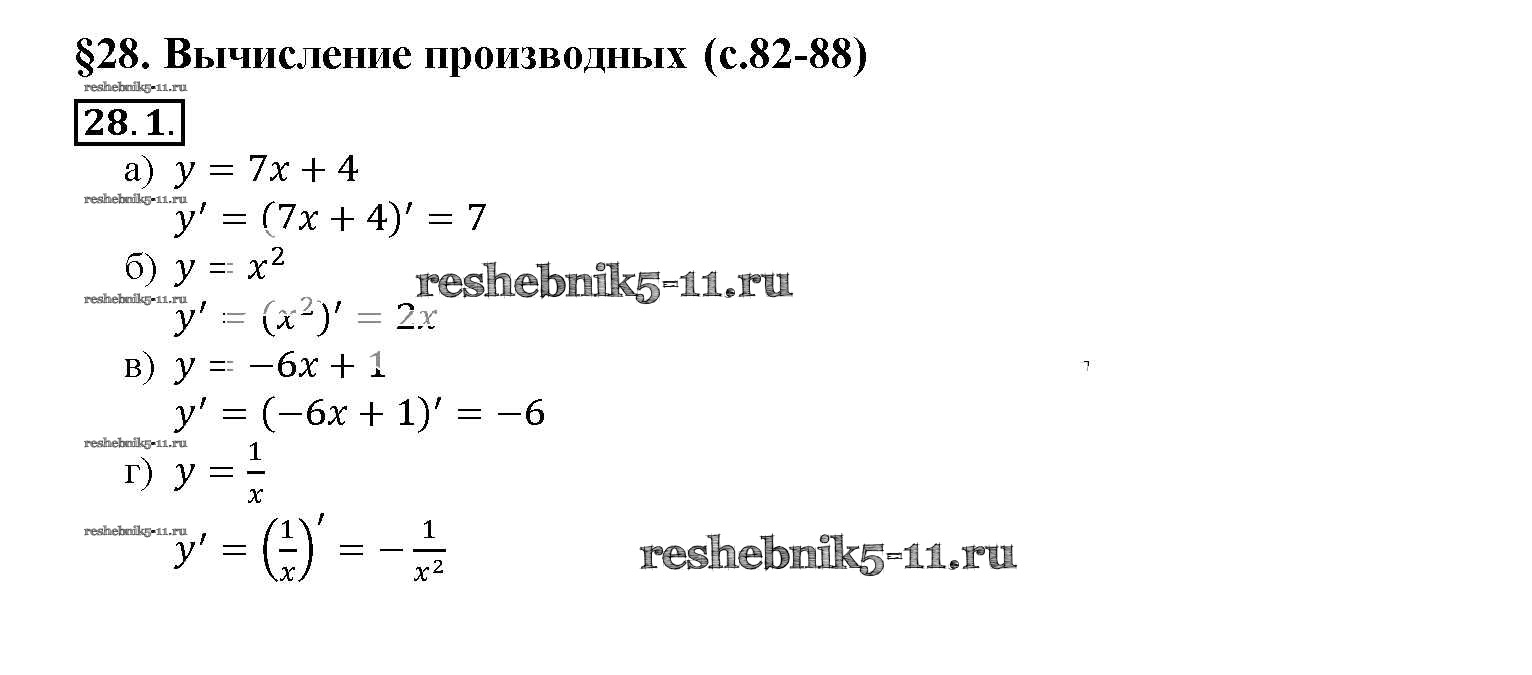Готовая домашняя работа с ответами по Алгебре за 10, 11 класс Мордкович, Денищева, Корешкова, Мишустина, Семёнов, Тульчинская Задачник Базовый уровень Часть 2 Мнемозина 2015 ФГОС - §28. Вычисление производных 28. 1