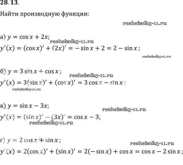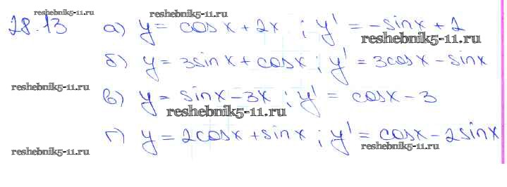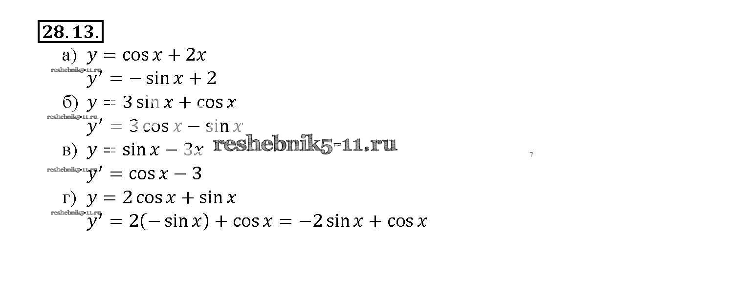 Готовая домашняя работа с ответами по Алгебре за 10, 11 класс Мордкович, Денищева, Корешкова, Мишустина, Семёнов, Тульчинская Задачник Базовый уровень Часть 2 Мнемозина 2015 ФГОС - §28. Вычисление производных 28. 13