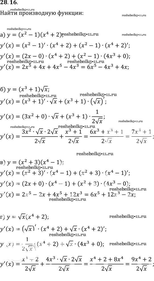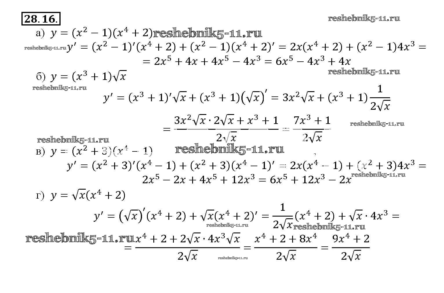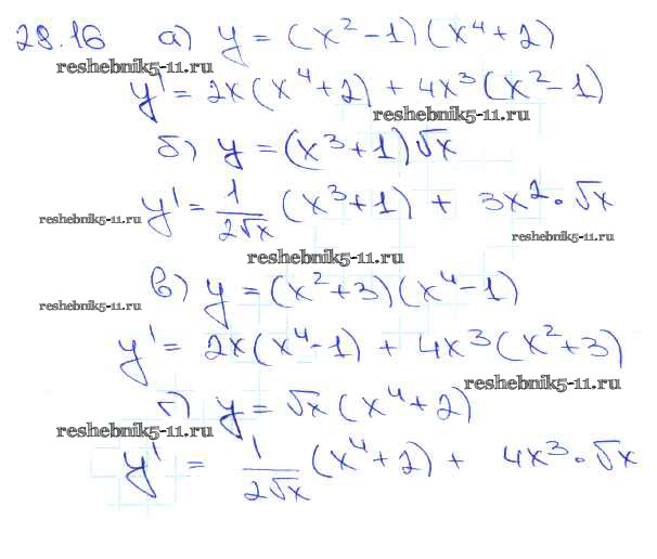 Готовая домашняя работа с ответами по Алгебре за 10, 11 класс Мордкович, Денищева, Корешкова, Мишустина, Семёнов, Тульчинская Задачник Базовый уровень Часть 2 Мнемозина 2015 ФГОС - §28. Вычисление производных 28. 16