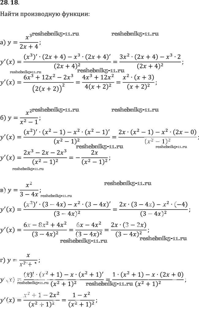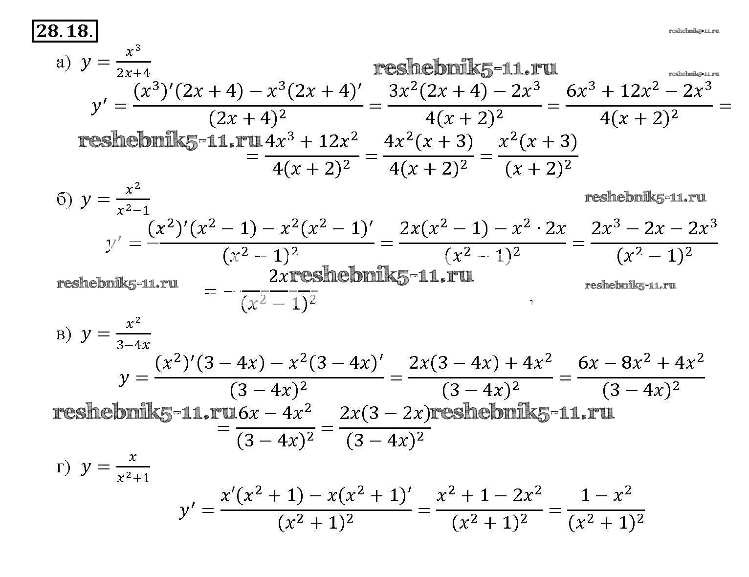 Готовая домашняя работа с ответами по Алгебре за 10, 11 класс Мордкович, Денищева, Корешкова, Мишустина, Семёнов, Тульчинская Задачник Базовый уровень Часть 2 Мнемозина 2015 ФГОС - §28. Вычисление производных 28. 18