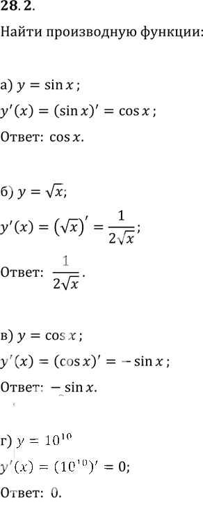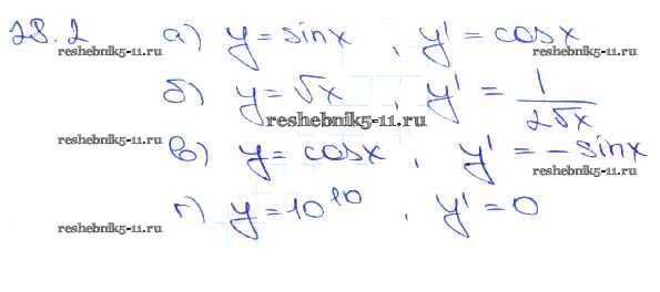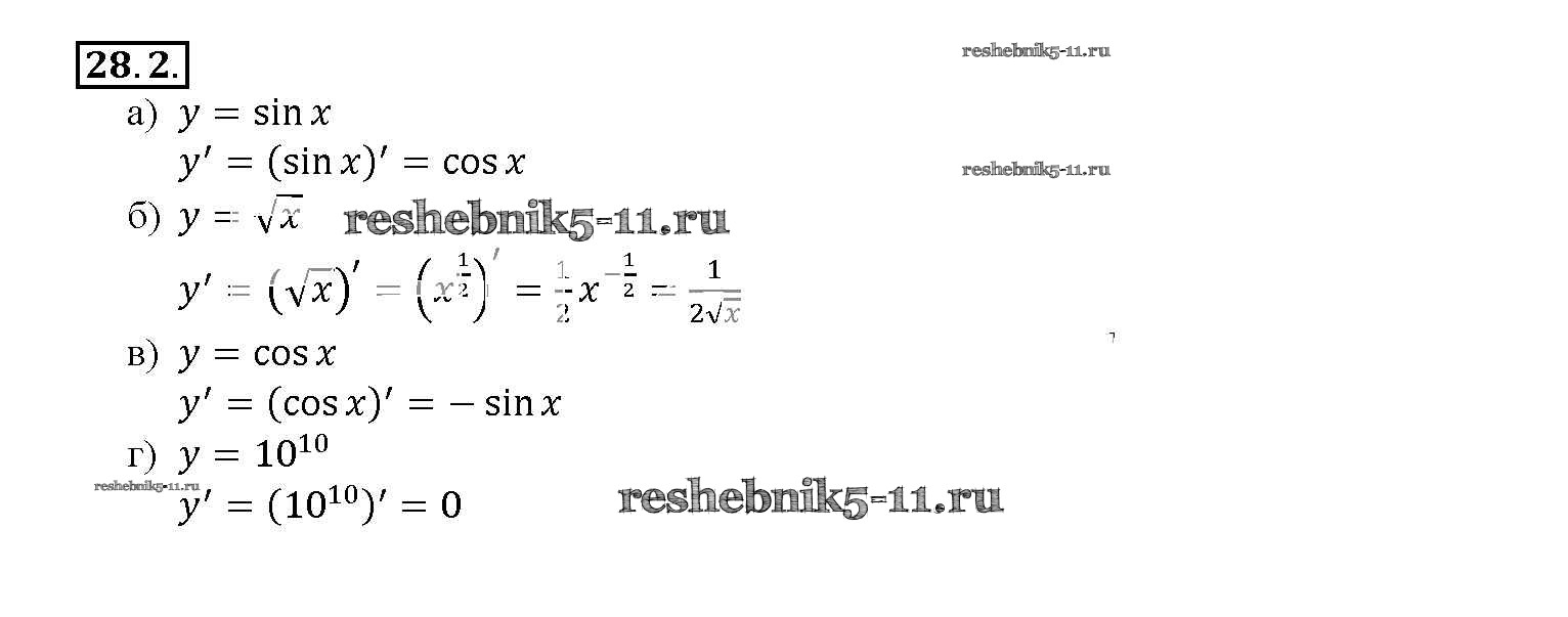 Готовая домашняя работа с ответами по Алгебре за 10, 11 класс Мордкович, Денищева, Корешкова, Мишустина, Семёнов, Тульчинская Задачник Базовый уровень Часть 2 Мнемозина 2015 ФГОС - §28. Вычисление производных 28. 2