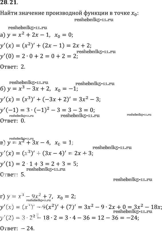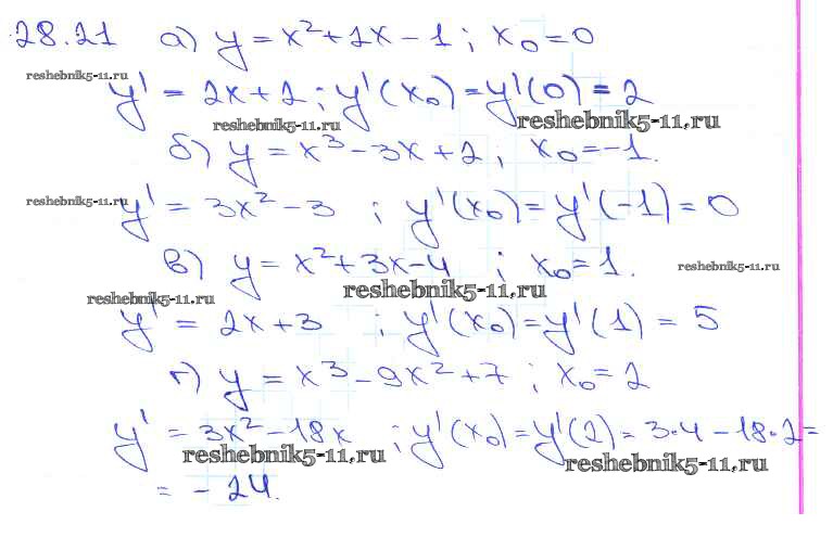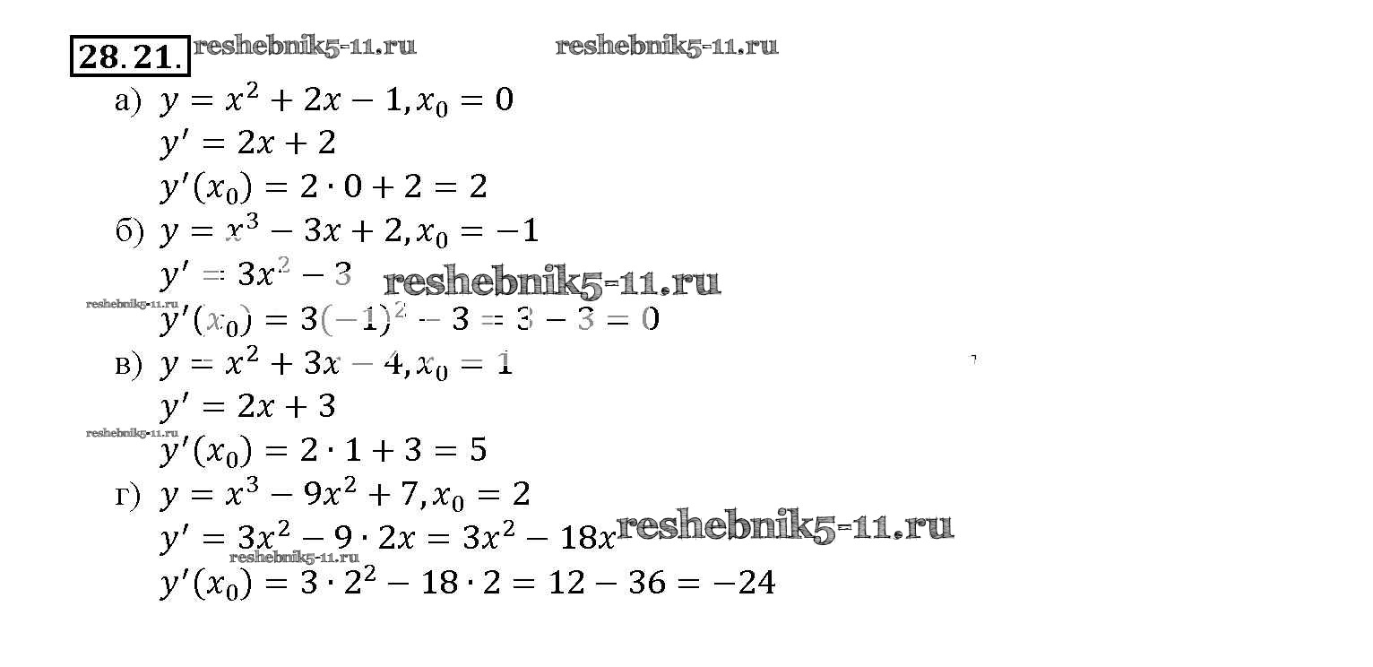 Готовая домашняя работа с ответами по Алгебре за 10, 11 класс Мордкович, Денищева, Корешкова, Мишустина, Семёнов, Тульчинская Задачник Базовый уровень Часть 2 Мнемозина 2015 ФГОС - §28. Вычисление производных 28. 21