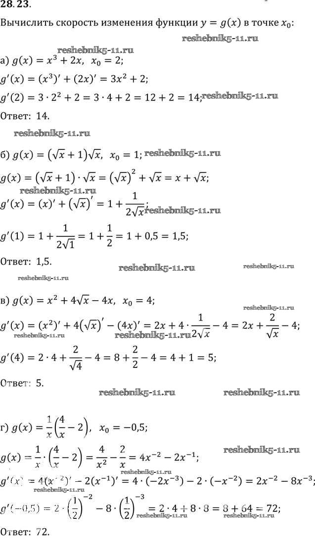 Готовая домашняя работа с ответами по Алгебре за 10, 11 класс Мордкович, Денищева, Корешкова, Мишустина, Семёнов, Тульчинская Задачник Базовый уровень Часть 2 Мнемозина 2015 ФГОС - §28. Вычисление производных 28. 23
