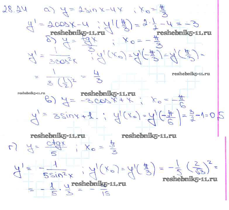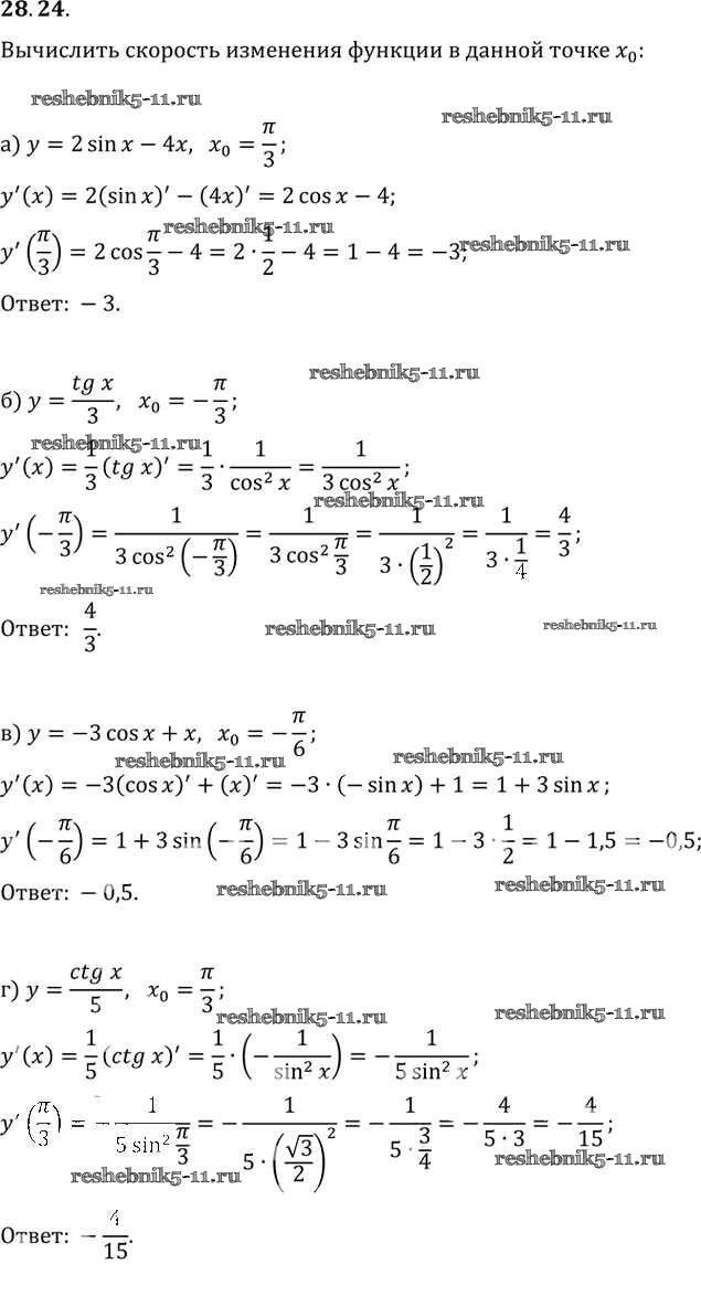 Готовая домашняя работа с ответами по Алгебре за 10, 11 класс Мордкович, Денищева, Корешкова, Мишустина, Семёнов, Тульчинская Задачник Базовый уровень Часть 2 Мнемозина 2015 ФГОС - §28. Вычисление производных 28. 24