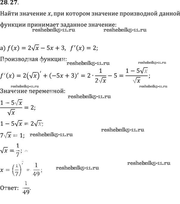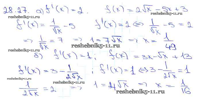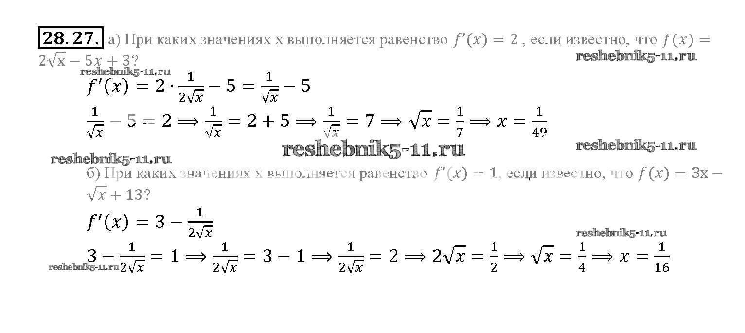 Готовая домашняя работа с ответами по Алгебре за 10, 11 класс Мордкович, Денищева, Корешкова, Мишустина, Семёнов, Тульчинская Задачник Базовый уровень Часть 2 Мнемозина 2015 ФГОС - §28. Вычисление производных 28. 27