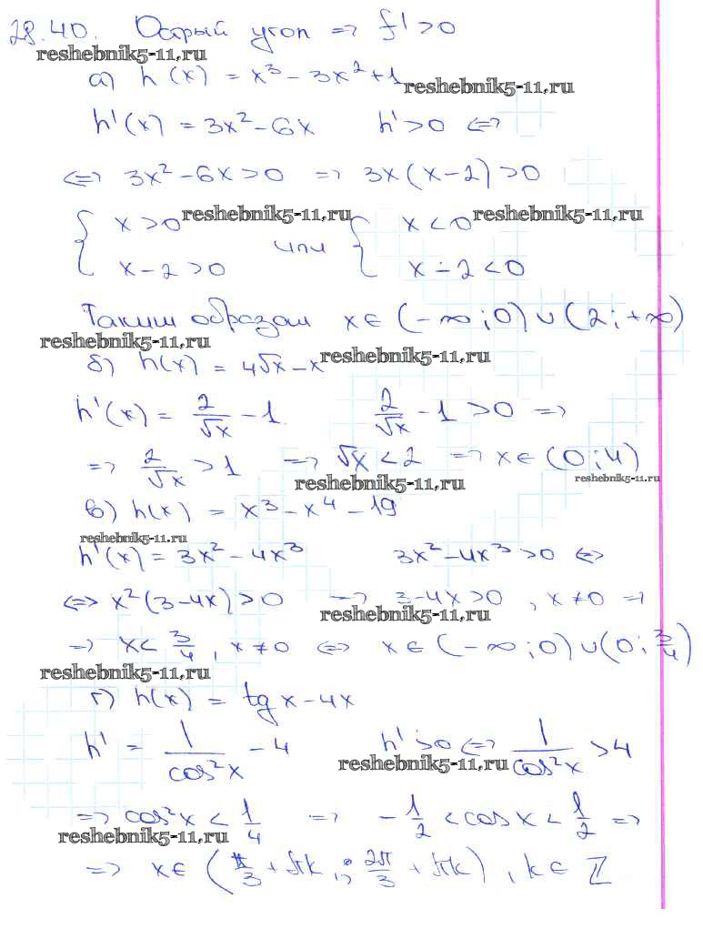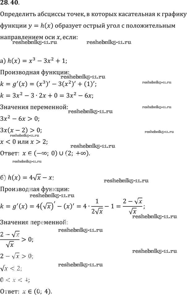 Готовая домашняя работа с ответами по Алгебре за 10, 11 класс Мордкович, Денищева, Корешкова, Мишустина, Семёнов, Тульчинская Задачник Базовый уровень Часть 2 Мнемозина 2015 ФГОС - §28. Вычисление производных 28. 40