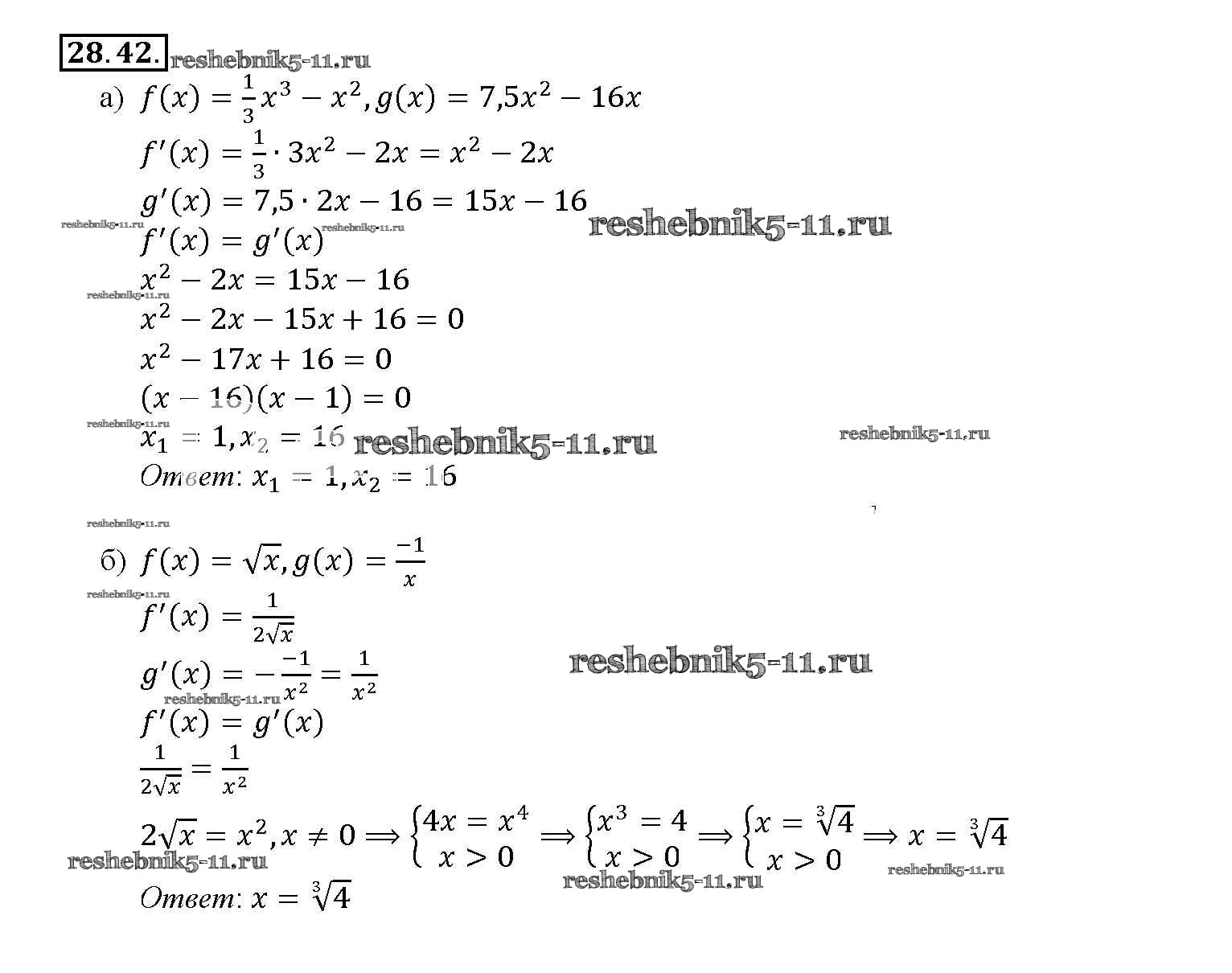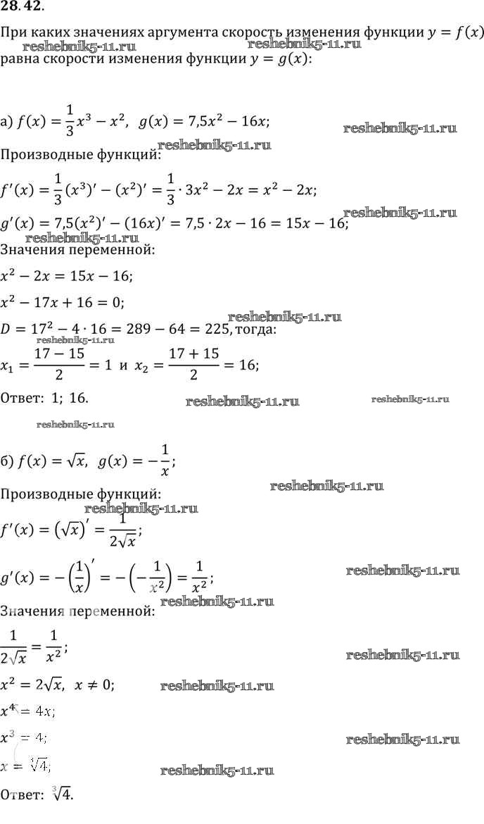 Готовая домашняя работа с ответами по Алгебре за 10, 11 класс Мордкович, Денищева, Корешкова, Мишустина, Семёнов, Тульчинская Задачник Базовый уровень Часть 2 Мнемозина 2015 ФГОС - §28. Вычисление производных 28. 42