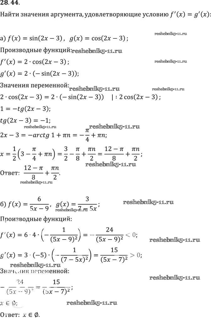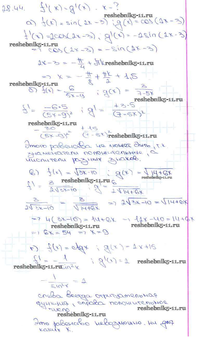 Готовая домашняя работа с ответами по Алгебре за 10, 11 класс Мордкович, Денищева, Корешкова, Мишустина, Семёнов, Тульчинская Задачник Базовый уровень Часть 2 Мнемозина 2015 ФГОС - §28. Вычисление производных 28. 44
