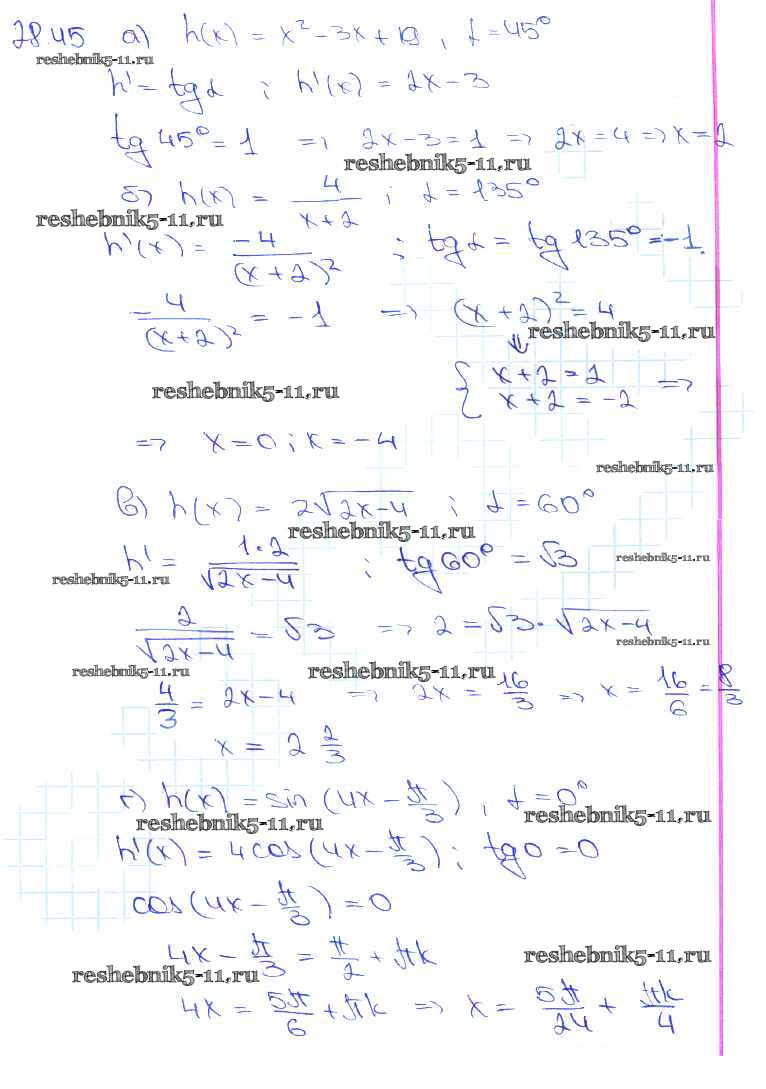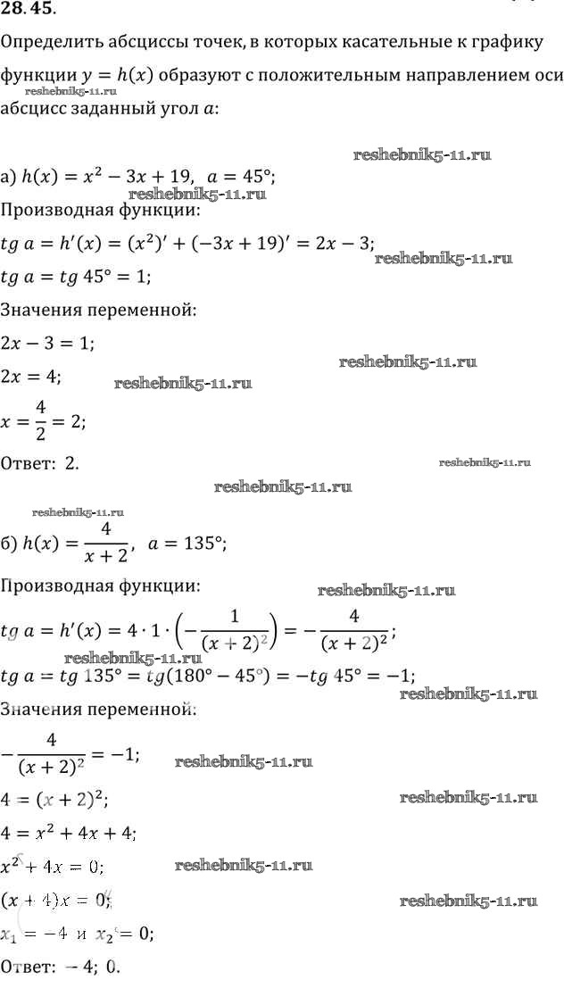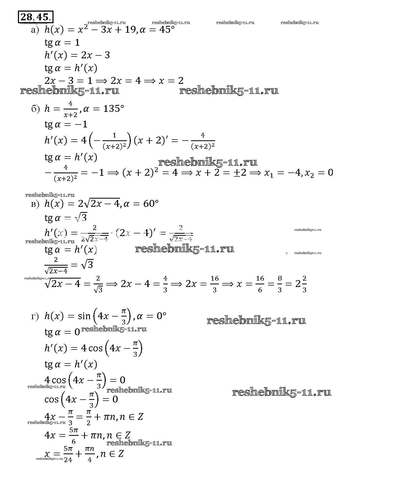 Готовая домашняя работа с ответами по Алгебре за 10, 11 класс Мордкович, Денищева, Корешкова, Мишустина, Семёнов, Тульчинская Задачник Базовый уровень Часть 2 Мнемозина 2015 ФГОС - §28. Вычисление производных 28. 45