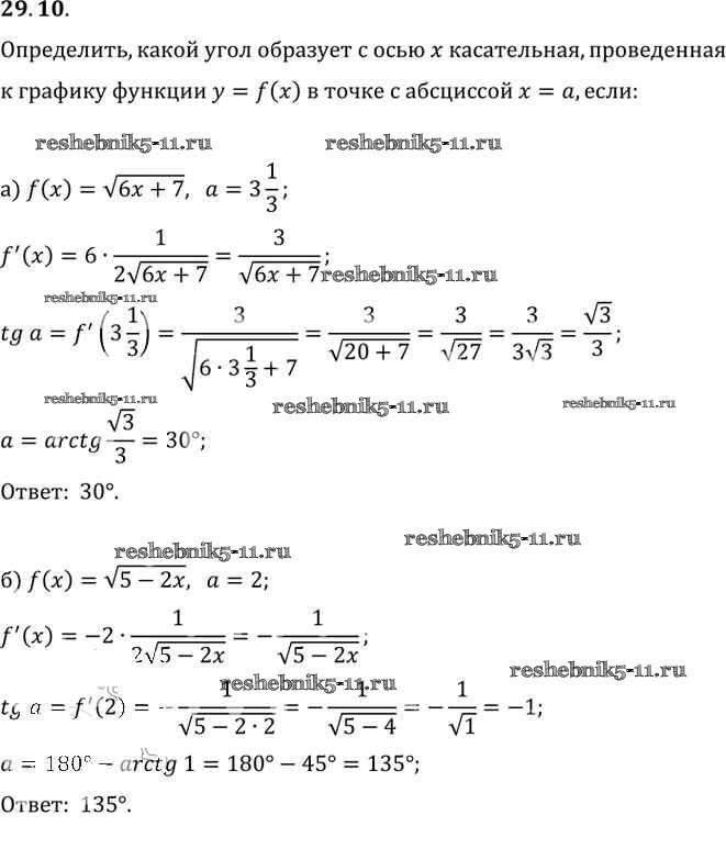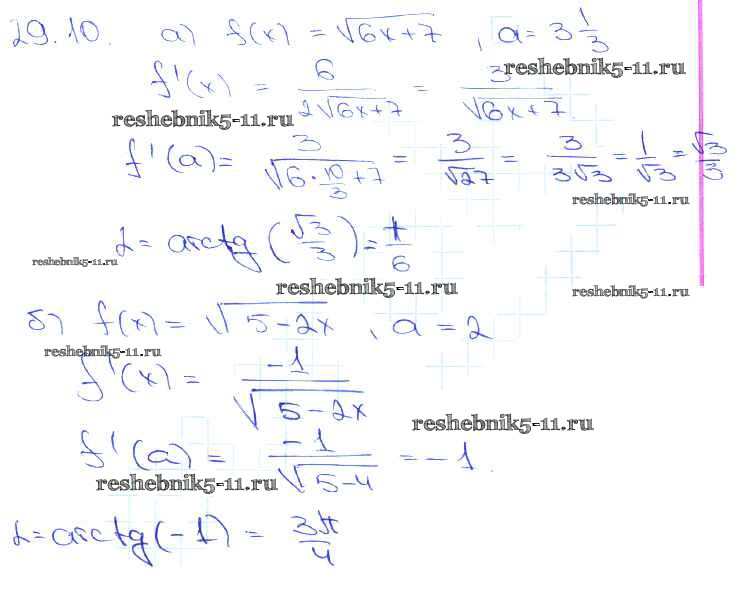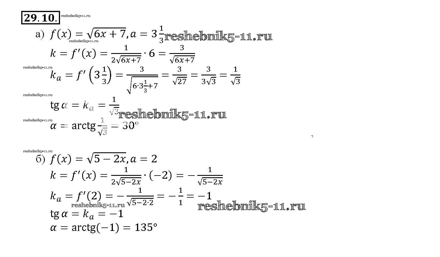 Готовая домашняя работа с ответами по Алгебре за 10, 11 класс Мордкович, Денищева, Корешкова, Мишустина, Семёнов, Тульчинская Задачник Базовый уровень Часть 2 Мнемозина 2015 ФГОС - §29. Уравнение касательной к графику функции 29. 10