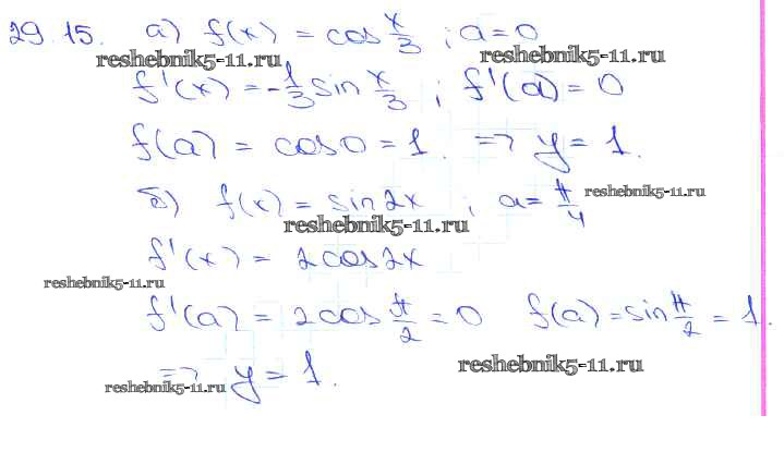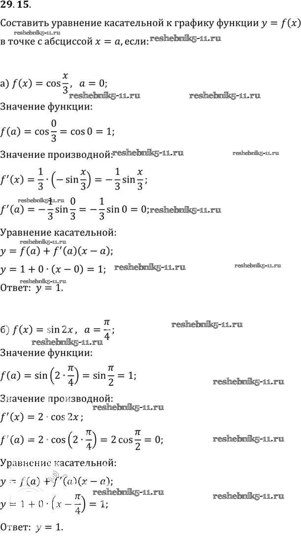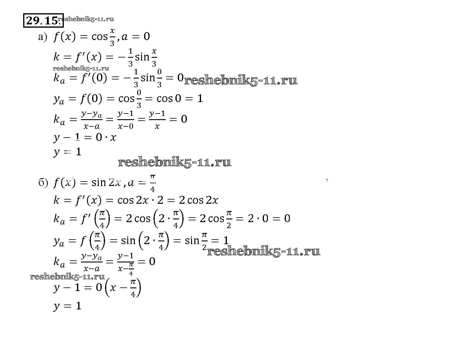 Готовая домашняя работа с ответами по Алгебре за 10, 11 класс Мордкович, Денищева, Корешкова, Мишустина, Семёнов, Тульчинская Задачник Базовый уровень Часть 2 Мнемозина 2015 ФГОС - §29. Уравнение касательной к графику функции 29. 15