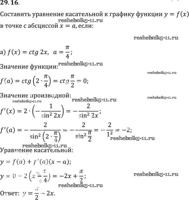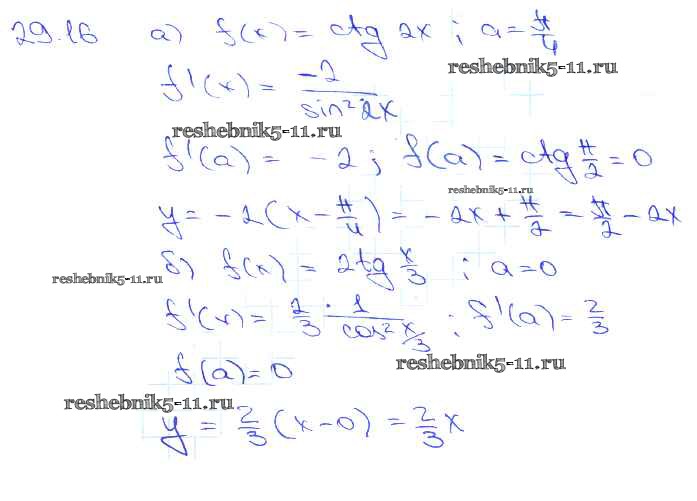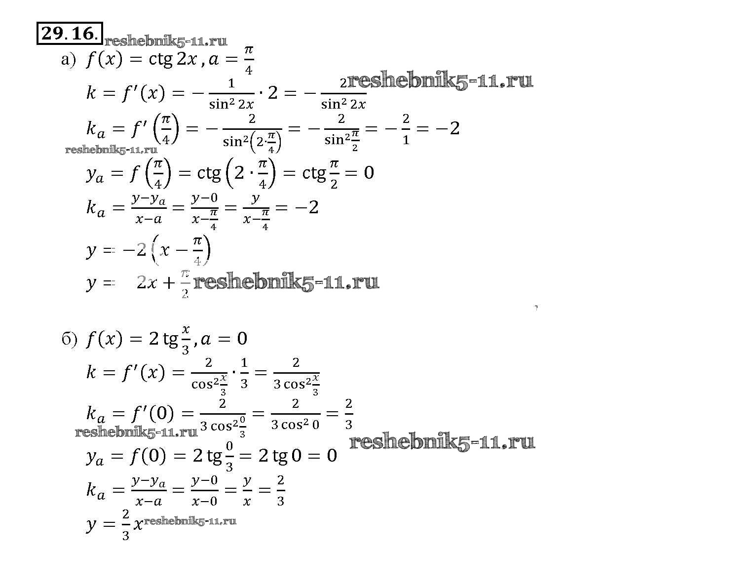 Готовая домашняя работа с ответами по Алгебре за 10, 11 класс Мордкович, Денищева, Корешкова, Мишустина, Семёнов, Тульчинская Задачник Базовый уровень Часть 2 Мнемозина 2015 ФГОС - §29. Уравнение касательной к графику функции 29. 16