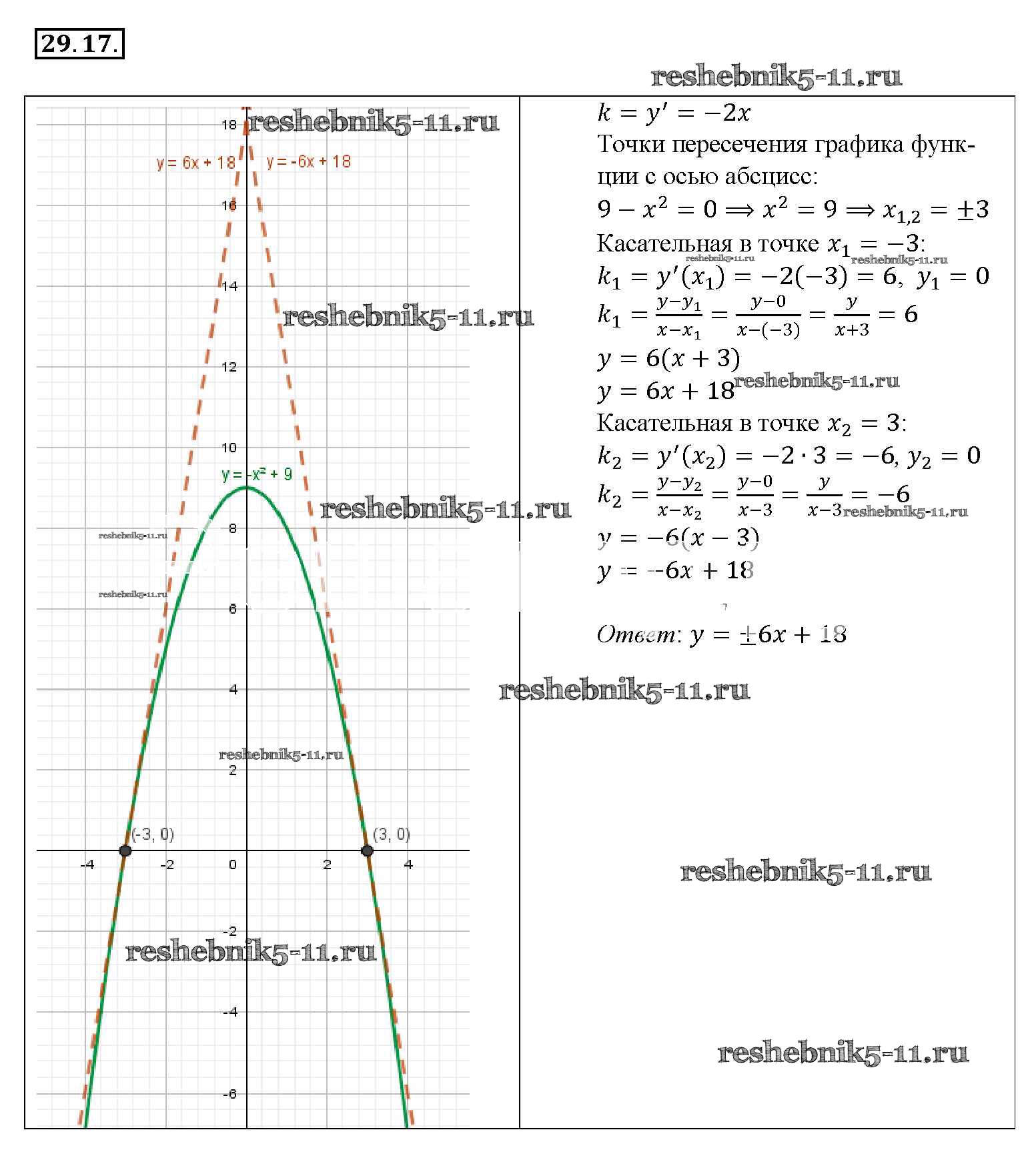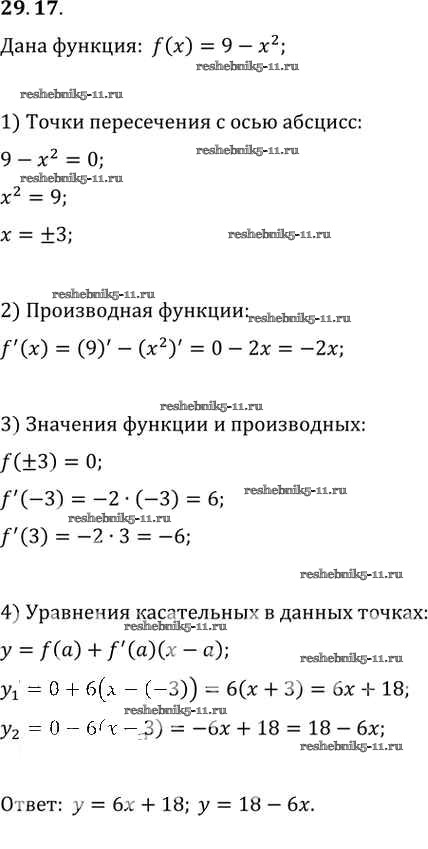 Готовая домашняя работа с ответами по Алгебре за 10, 11 класс Мордкович, Денищева, Корешкова, Мишустина, Семёнов, Тульчинская Задачник Базовый уровень Часть 2 Мнемозина 2015 ФГОС - §29. Уравнение касательной к графику функции 29. 17