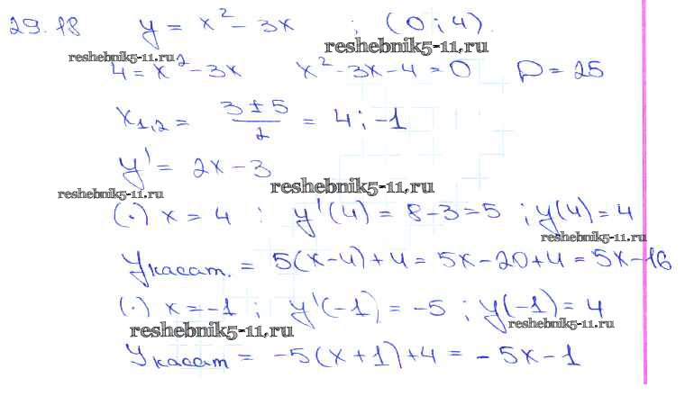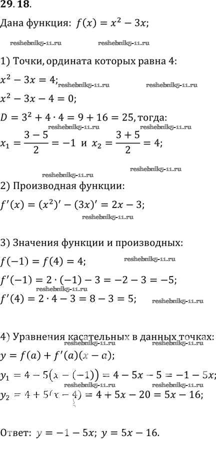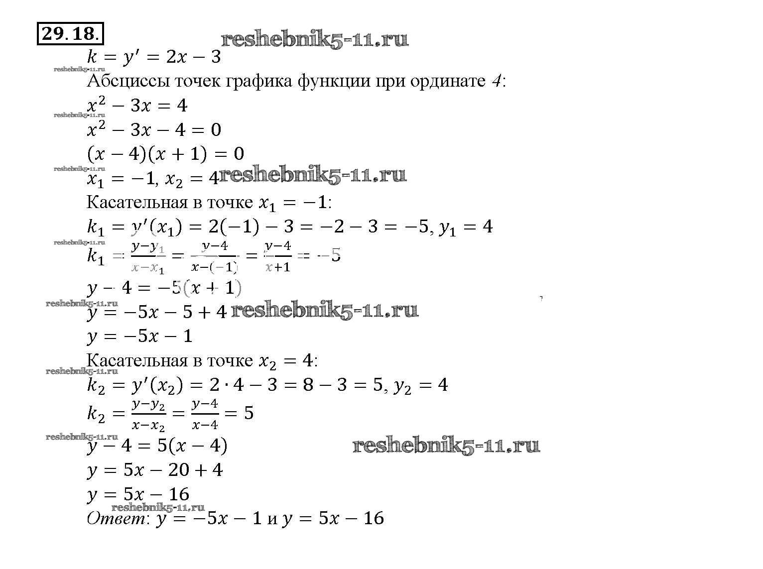 Готовая домашняя работа с ответами по Алгебре за 10, 11 класс Мордкович, Денищева, Корешкова, Мишустина, Семёнов, Тульчинская Задачник Базовый уровень Часть 2 Мнемозина 2015 ФГОС - §29. Уравнение касательной к графику функции 29. 18