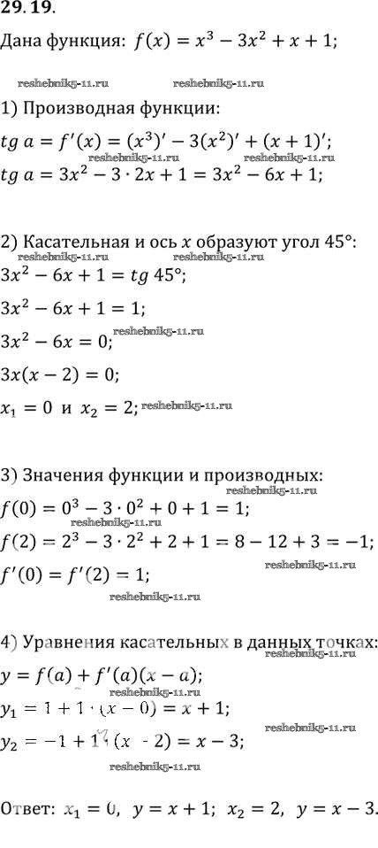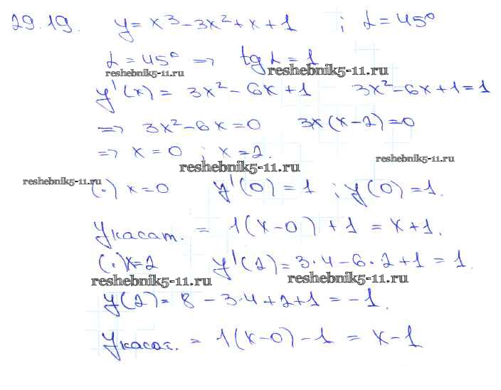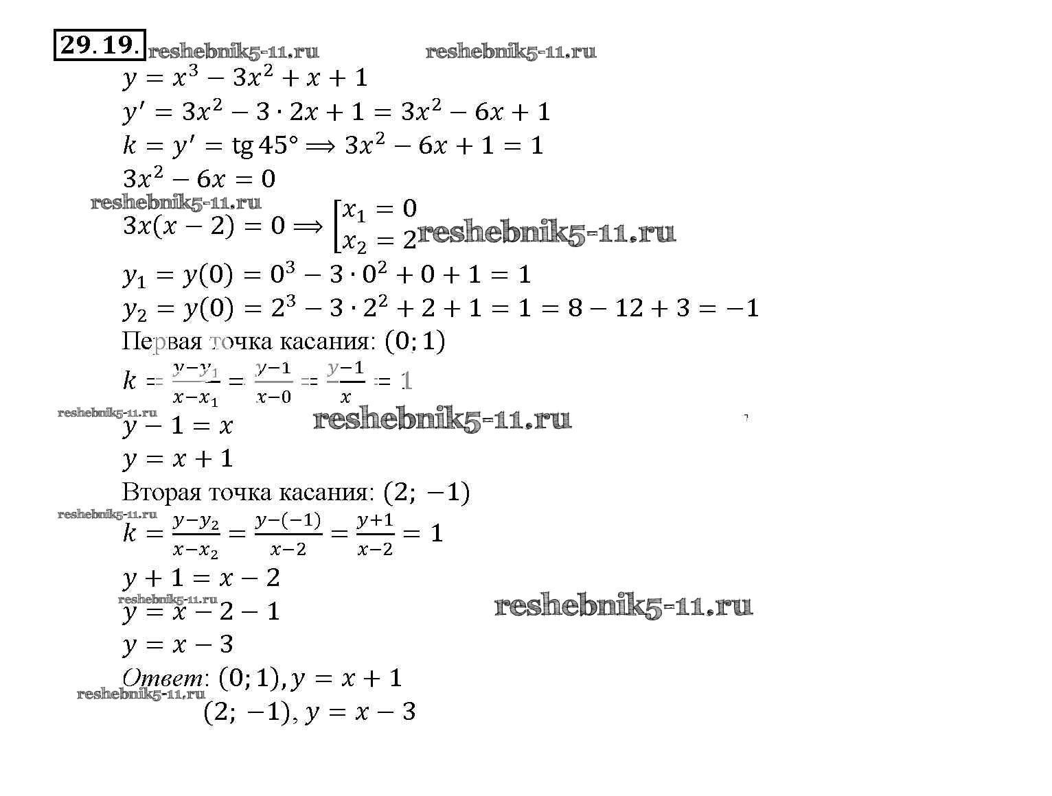 Готовая домашняя работа с ответами по Алгебре за 10, 11 класс Мордкович, Денищева, Корешкова, Мишустина, Семёнов, Тульчинская Задачник Базовый уровень Часть 2 Мнемозина 2015 ФГОС - §29. Уравнение касательной к графику функции 29. 19
