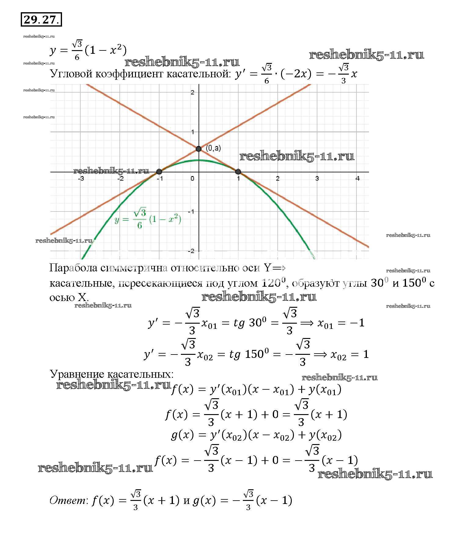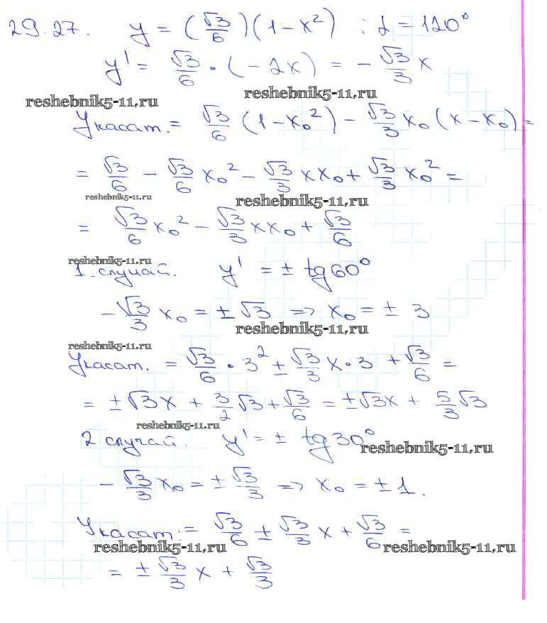 Готовая домашняя работа с ответами по Алгебре за 10, 11 класс Мордкович, Денищева, Корешкова, Мишустина, Семёнов, Тульчинская Задачник Базовый уровень Часть 2 Мнемозина 2015 ФГОС - §29. Уравнение касательной к графику функции 29. 27