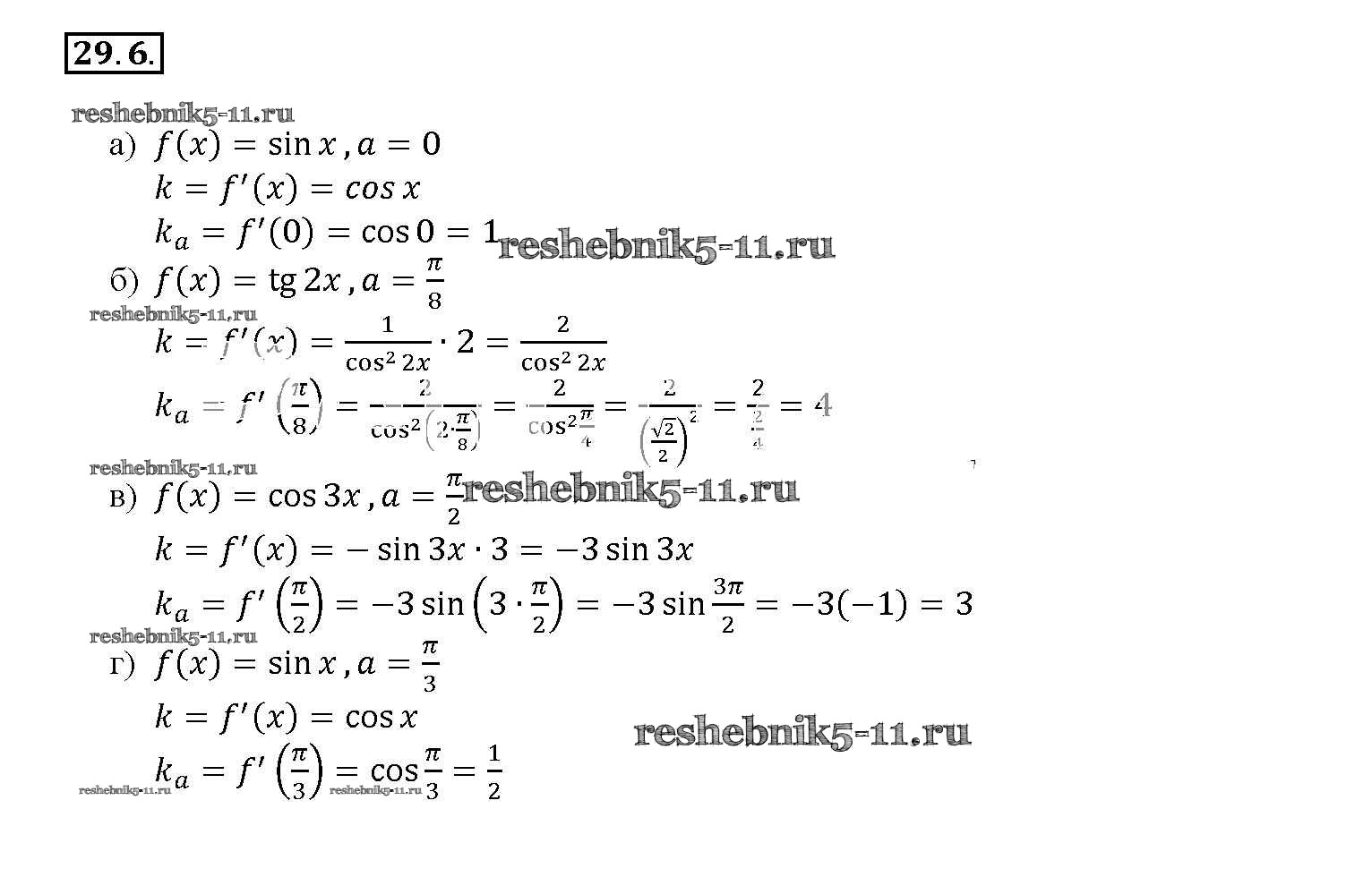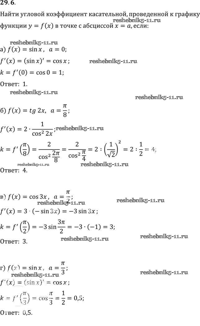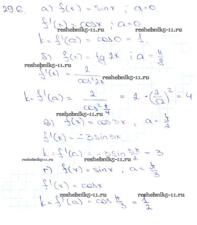 Готовая домашняя работа с ответами по Алгебре за 10, 11 класс Мордкович, Денищева, Корешкова, Мишустина, Семёнов, Тульчинская Задачник Базовый уровень Часть 2 Мнемозина 2015 ФГОС - §29. Уравнение касательной к графику функции 29. 6