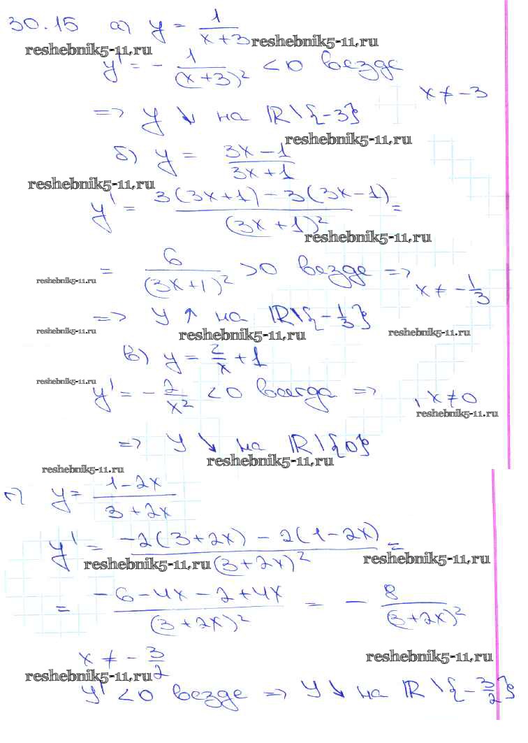 Готовая домашняя работа с ответами по Алгебре за 10, 11 класс Мордкович, Денищева, Корешкова, Мишустина, Семёнов, Тульчинская Задачник Базовый уровень Часть 2 Мнемозина 2015 ФГОС - §30. Применение производной для исследования функций на монотонность и экстремумы 30. 15