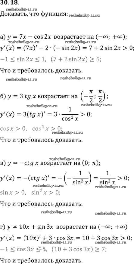 Готовая домашняя работа с ответами по Алгебре за 10, 11 класс Мордкович, Денищева, Корешкова, Мишустина, Семёнов, Тульчинская Задачник Базовый уровень Часть 2 Мнемозина 2015 ФГОС - §30. Применение производной для исследования функций на монотонность и экстремумы 30. 18