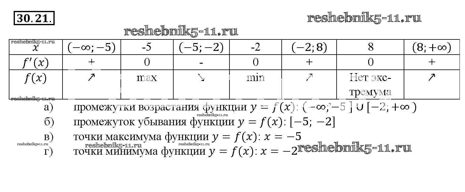 Готовая домашняя работа с ответами по Алгебре за 10, 11 класс Мордкович, Денищева, Корешкова, Мишустина, Семёнов, Тульчинская Задачник Базовый уровень Часть 2 Мнемозина 2015 ФГОС - §30. Применение производной для исследования функций на монотонность и экстремумы 30. 21