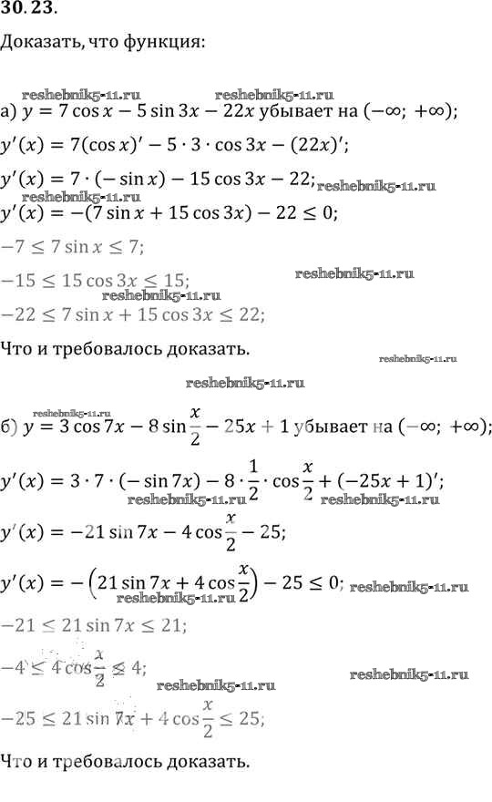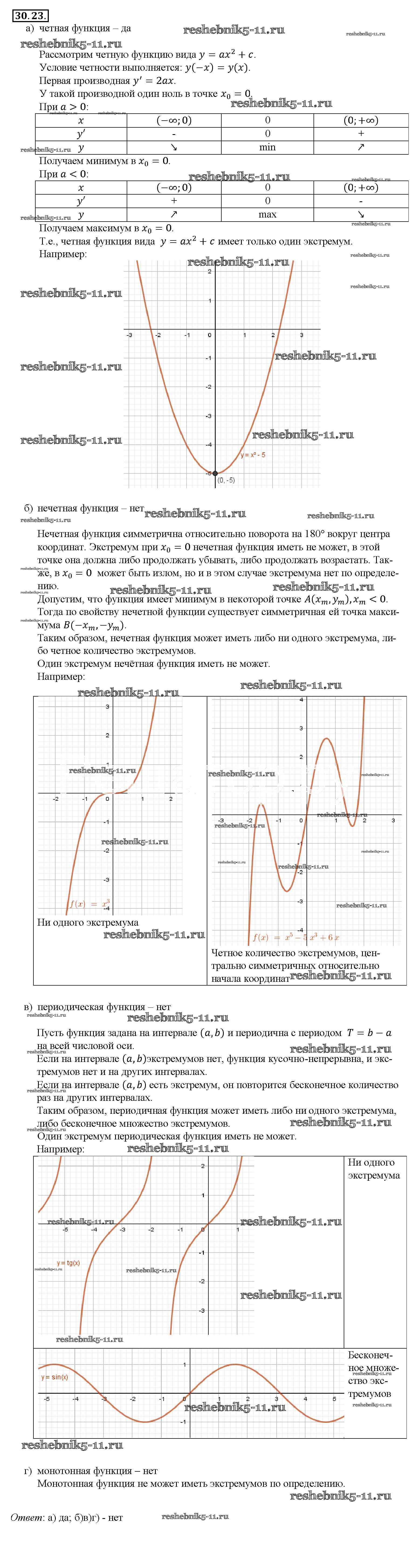 Готовая домашняя работа с ответами по Алгебре за 10, 11 класс Мордкович, Денищева, Корешкова, Мишустина, Семёнов, Тульчинская Задачник Базовый уровень Часть 2 Мнемозина 2015 ФГОС - §30. Применение производной для исследования функций на монотонность и экстремумы 30. 23