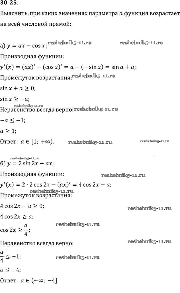 Готовая домашняя работа с ответами по Алгебре за 10, 11 класс Мордкович, Денищева, Корешкова, Мишустина, Семёнов, Тульчинская Задачник Базовый уровень Часть 2 Мнемозина 2015 ФГОС - §30. Применение производной для исследования функций на монотонность и экстремумы 30. 25