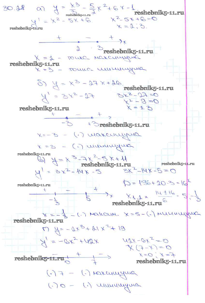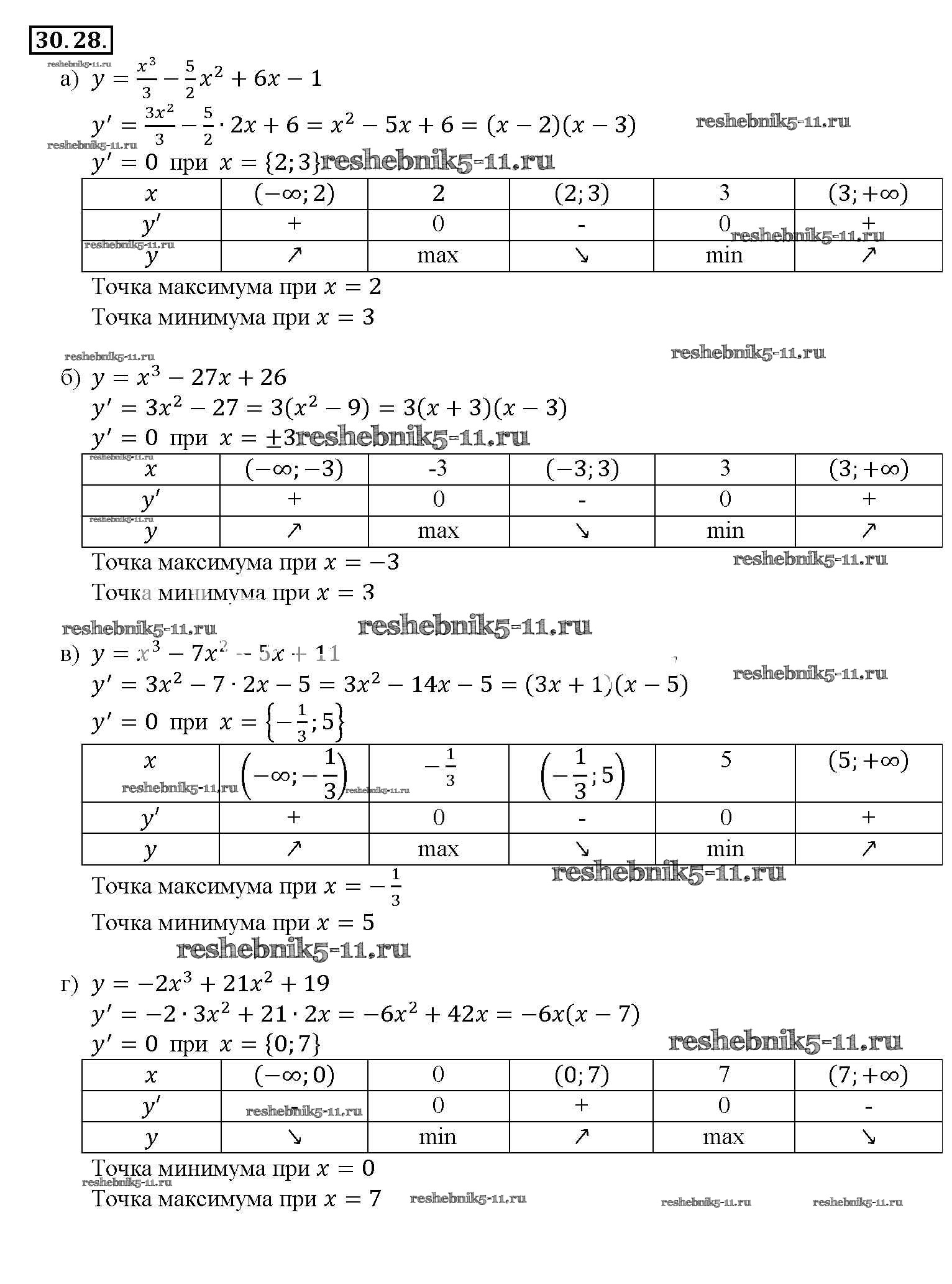 Готовая домашняя работа с ответами по Алгебре за 10, 11 класс Мордкович, Денищева, Корешкова, Мишустина, Семёнов, Тульчинская Задачник Базовый уровень Часть 2 Мнемозина 2015 ФГОС - §30. Применение производной для исследования функций на монотонность и экстремумы 30. 28
