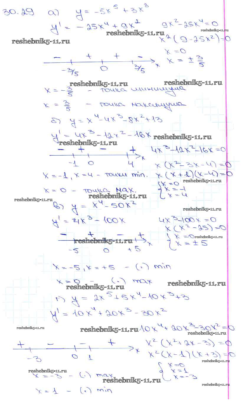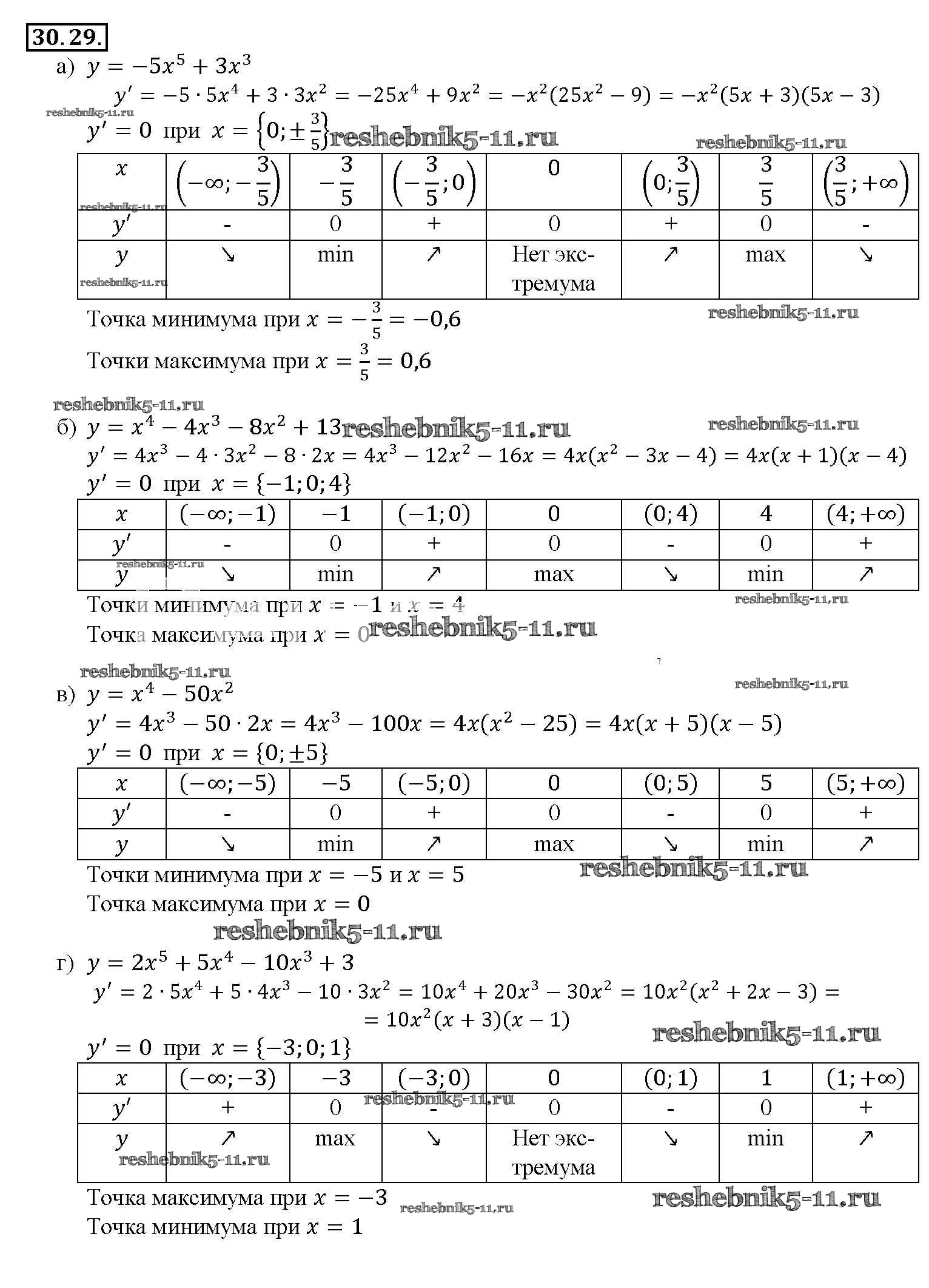 Готовая домашняя работа с ответами по Алгебре за 10, 11 класс Мордкович, Денищева, Корешкова, Мишустина, Семёнов, Тульчинская Задачник Базовый уровень Часть 2 Мнемозина 2015 ФГОС - §30. Применение производной для исследования функций на монотонность и экстремумы 30. 29