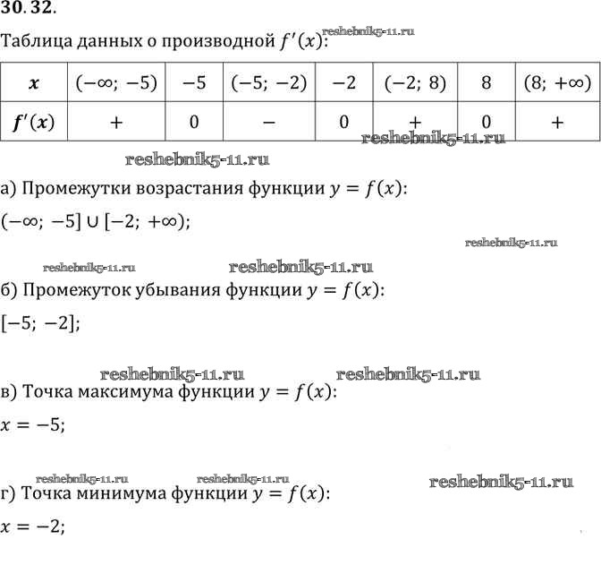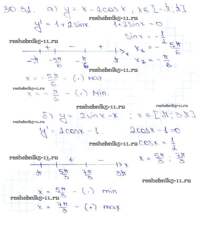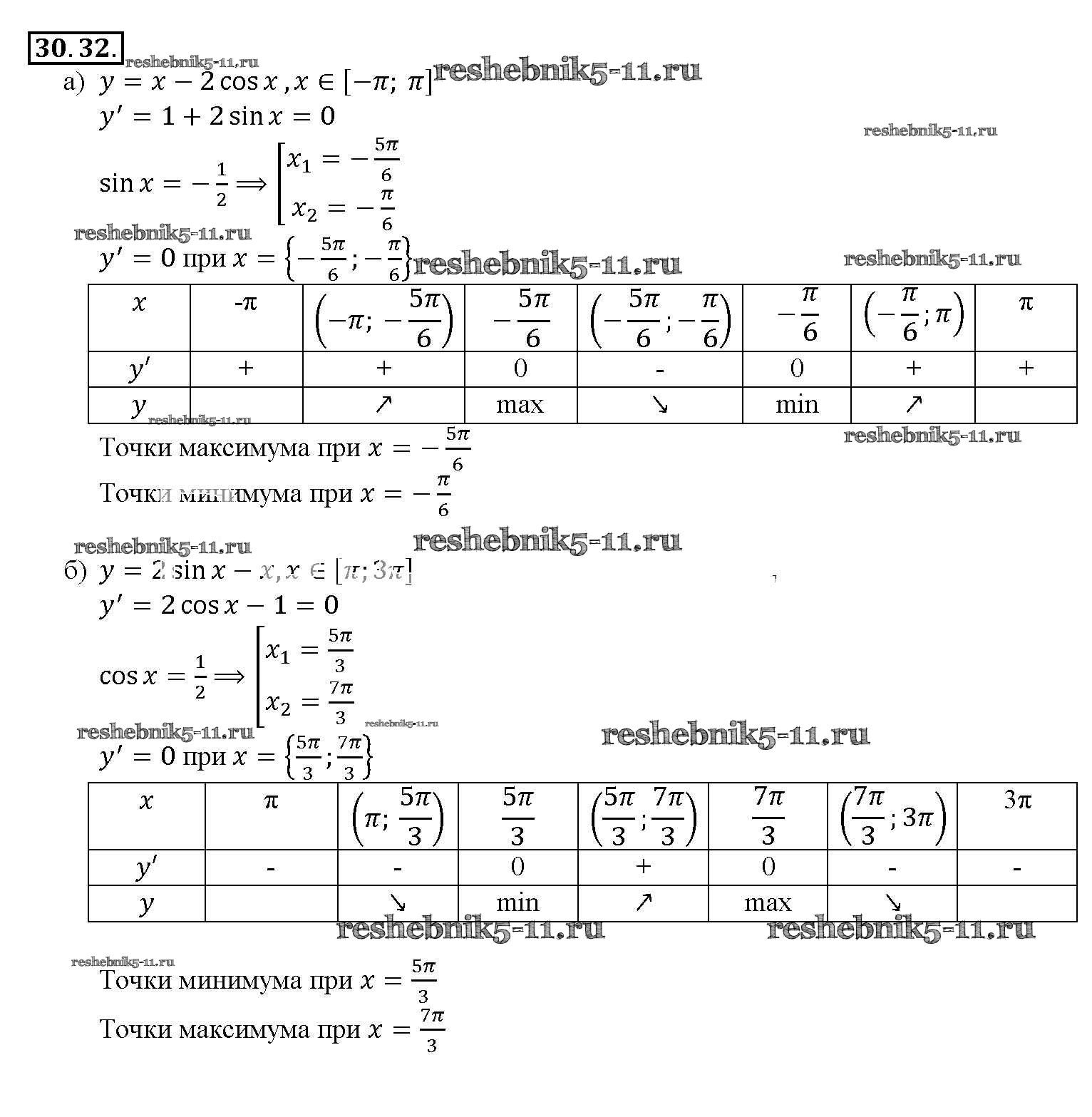 Готовая домашняя работа с ответами по Алгебре за 10, 11 класс Мордкович, Денищева, Корешкова, Мишустина, Семёнов, Тульчинская Задачник Базовый уровень Часть 2 Мнемозина 2015 ФГОС - §30. Применение производной для исследования функций на монотонность и экстремумы 30. 32