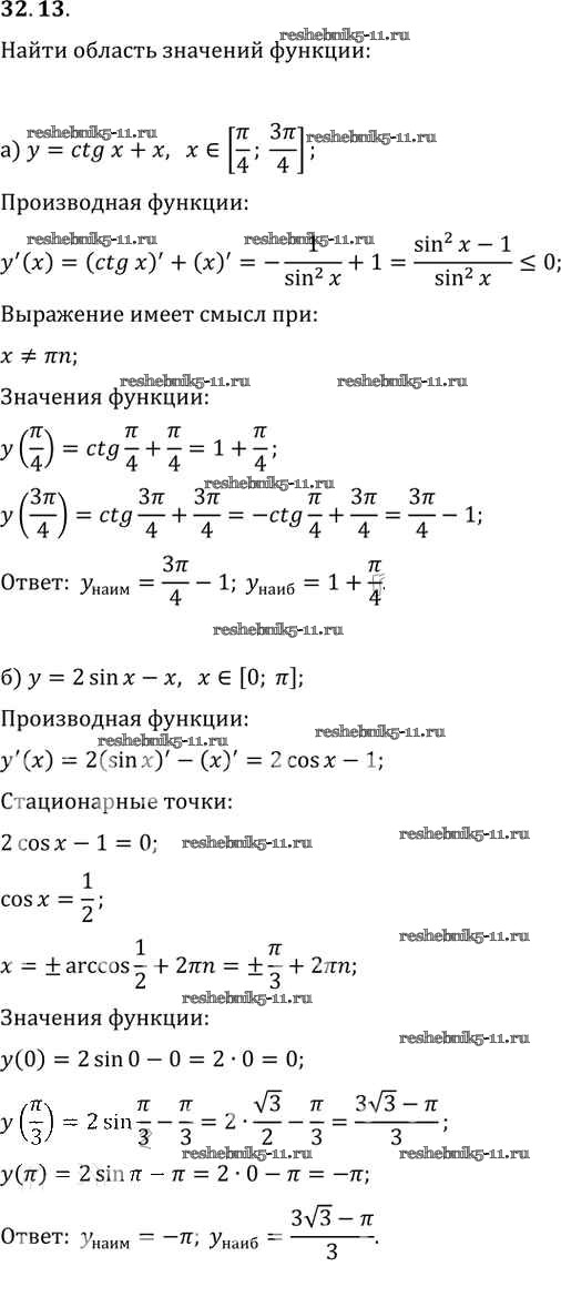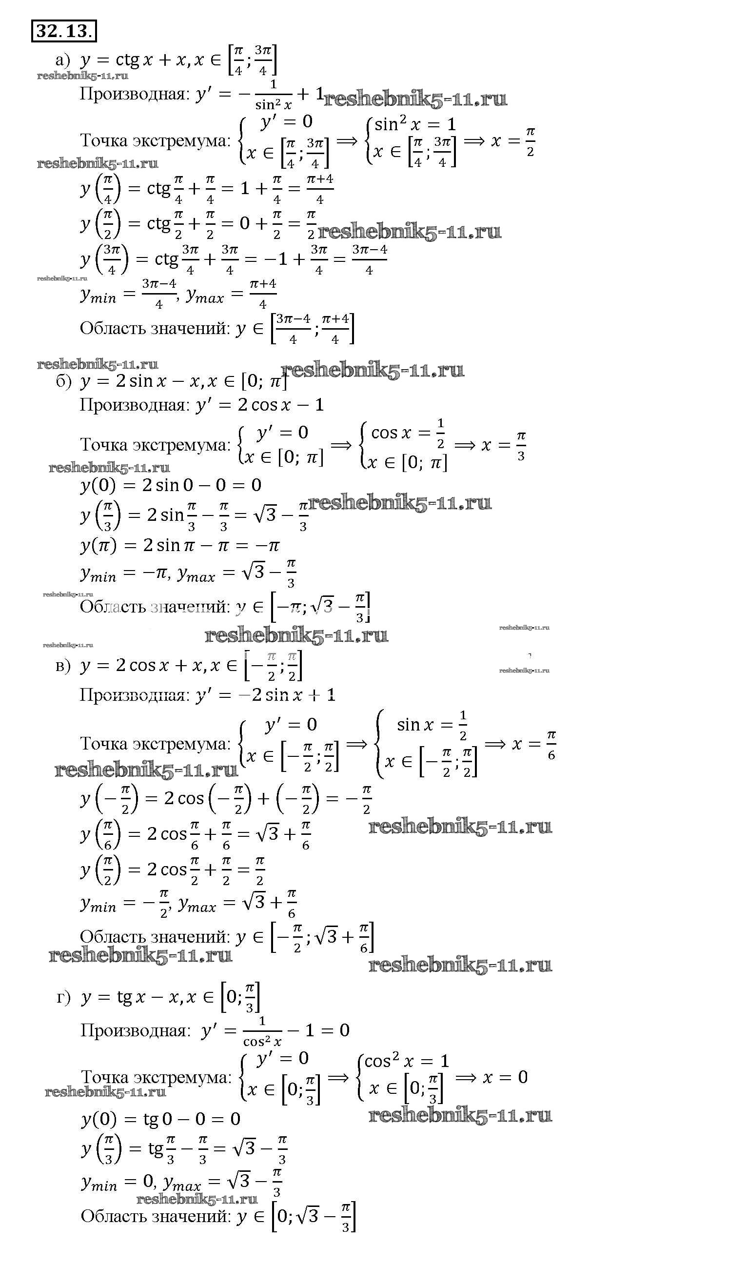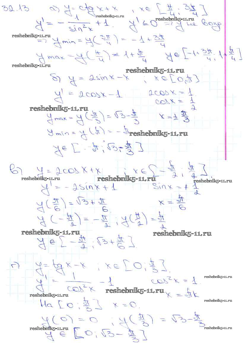 Готовая домашняя работа с ответами по Алгебре за 10, 11 класс Мордкович, Денищева, Корешкова, Мишустина, Семёнов, Тульчинская Задачник Базовый уровень Часть 2 Мнемозина 2015 ФГОС - §32. Применение производной для нахождения наибольших и наименьших значений величин 32. 13