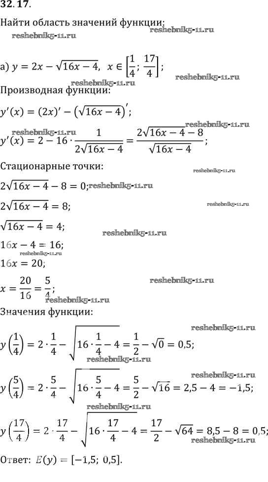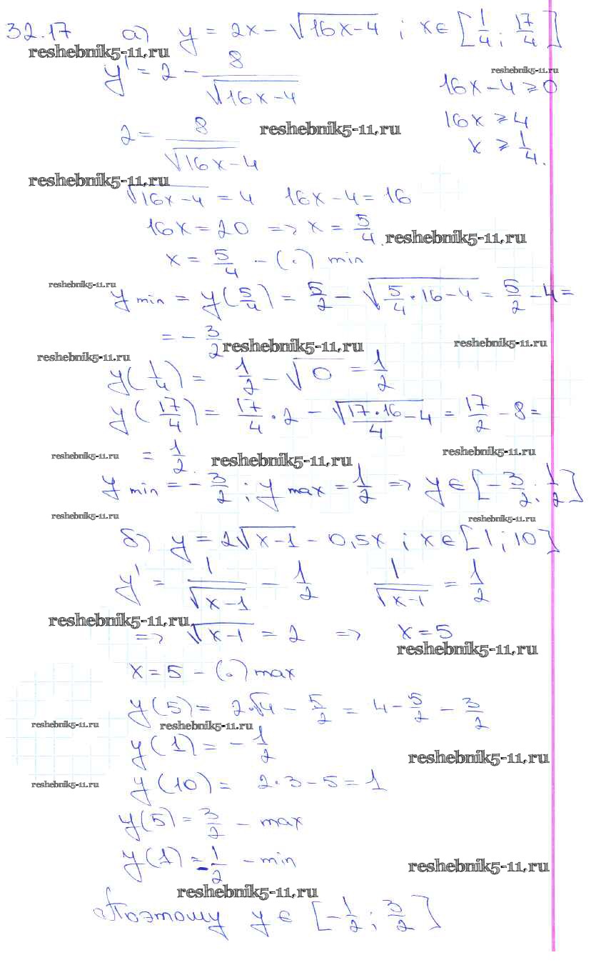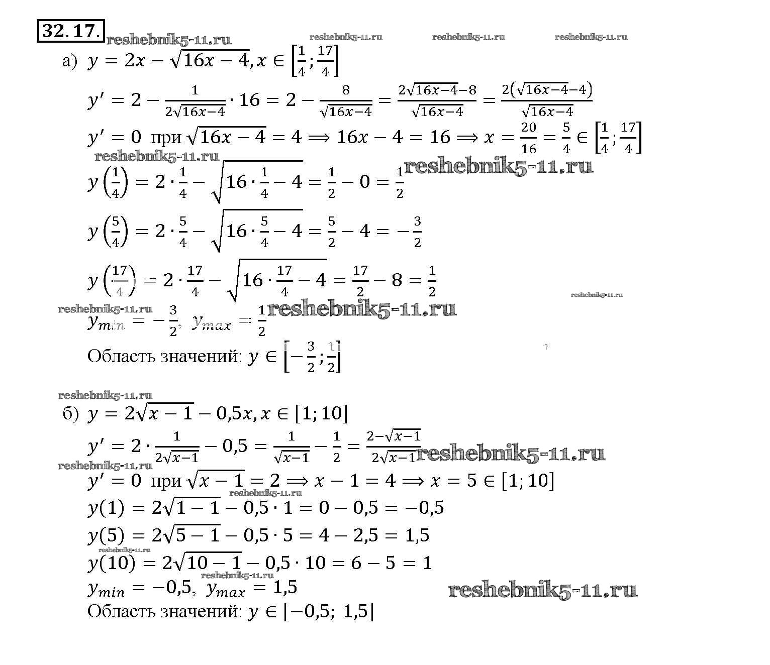 Готовая домашняя работа с ответами по Алгебре за 10, 11 класс Мордкович, Денищева, Корешкова, Мишустина, Семёнов, Тульчинская Задачник Базовый уровень Часть 2 Мнемозина 2015 ФГОС - §32. Применение производной для нахождения наибольших и наименьших значений величин 32. 17