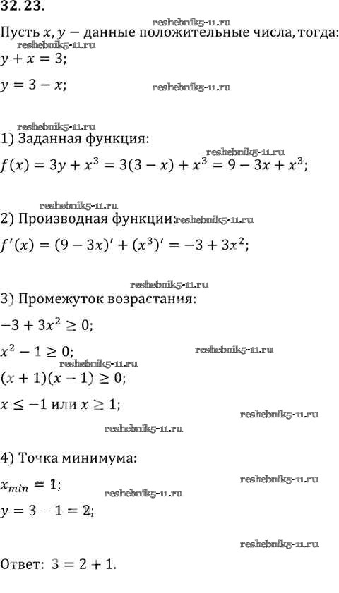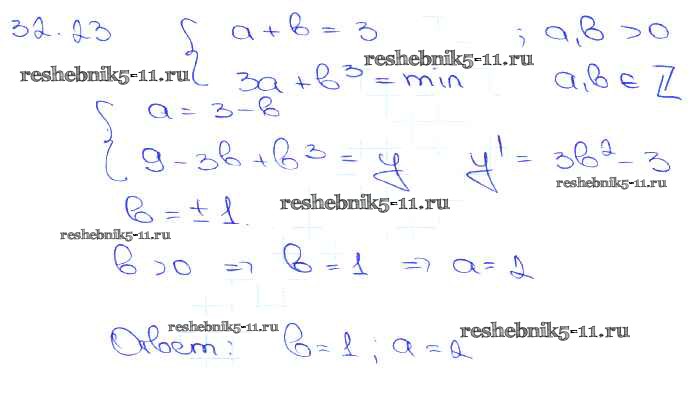 Готовая домашняя работа с ответами по Алгебре за 10, 11 класс Мордкович, Денищева, Корешкова, Мишустина, Семёнов, Тульчинская Задачник Базовый уровень Часть 2 Мнемозина 2015 ФГОС - §32. Применение производной для нахождения наибольших и наименьших значений величин 32. 23