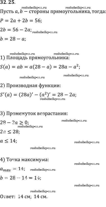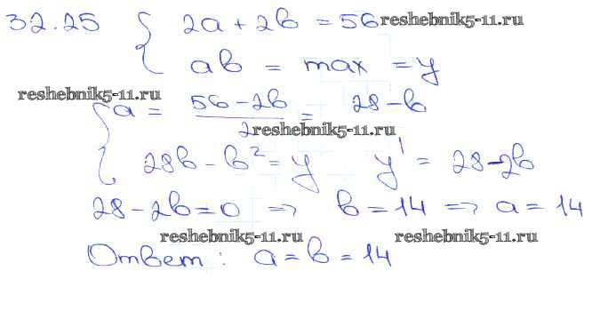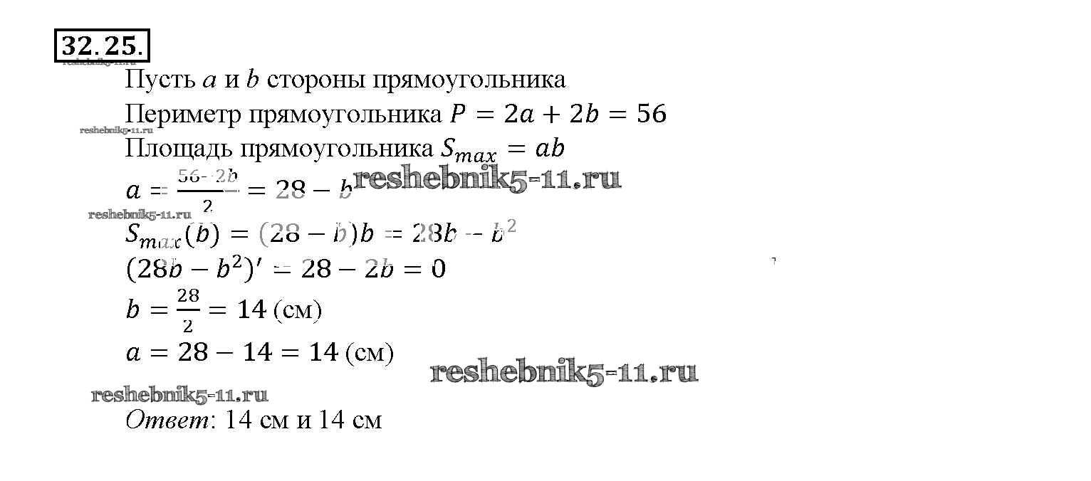 Готовая домашняя работа с ответами по Алгебре за 10, 11 класс Мордкович, Денищева, Корешкова, Мишустина, Семёнов, Тульчинская Задачник Базовый уровень Часть 2 Мнемозина 2015 ФГОС - §32. Применение производной для нахождения наибольших и наименьших значений величин 32. 25
