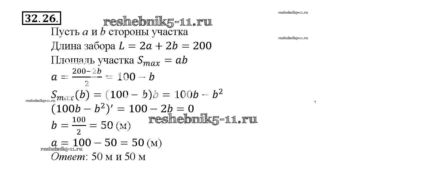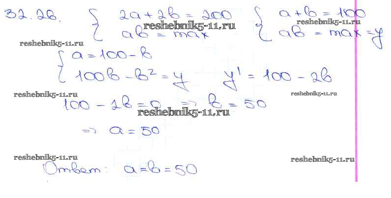 Готовая домашняя работа с ответами по Алгебре за 10, 11 класс Мордкович, Денищева, Корешкова, Мишустина, Семёнов, Тульчинская Задачник Базовый уровень Часть 2 Мнемозина 2015 ФГОС - §32. Применение производной для нахождения наибольших и наименьших значений величин 32. 26